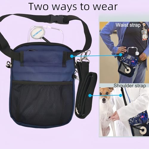 【Tear-resistant and durable】Made of tear-resistant Oxford cloth, suitable for daily use. This medical storage belt is durable, has multiple compartments, and is equipped with high-quality zipper closures and durable quick buckles for quick access to items. Note: Only the nurse's waist bag is included, accessories are not included.【Practical and convenient】This nurse storage bag has multiple slots and mesh pockets. Our nurse waist bag is designed for busy medical staff. Multiple quick-access pockets keep basic supplies readily available without rummaging or running around. It greatly improves the efficiency of medical staff's daily work. It can keep all your necessities organized, and the spacious main compartment and back pockets provide additional storage space for medical supplies.【Unique design】This nurse tool belt comes with 1 removable tape, magic sticker design to fix the stethoscope, and easy-access pockets for convenient storage and easy to find the required equipment. Lightweight and slim design allows it to be hung around the waist or shoulder, allowing you to better respond to emergencies.【Two ways to wear】The adjustable belt fits most people, with an easy quick-release buckle, making it easier and more comfortable to carry. You can wear this medical waist bag around your waist or over your shoulder, and the buckle adjustment strap can better fix it to prevent sliding.【Best Gift】This nurse waist bag medical apron is perfect for Certified Nursing Assistants (CNA), Nurse Practitioners (NP), Physician Assistants (PA), Emergency Medical Technicians (EMT), Medical Assistants, Veterinarians, Administrators, Pharmacists, Dental Medical Assistants, and more! Whether it's Christmas, Nurses Week, or any other occasion, it's a great gift for yourself or your friends.