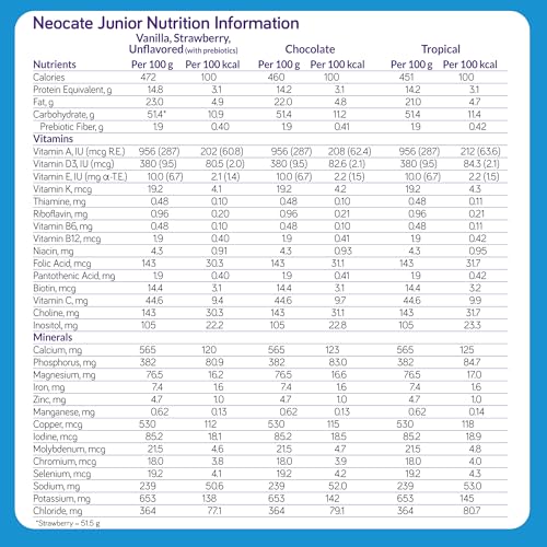 Neocate Junior Food: Dairy free hypoallergenic formula for use under supervisionHypoallergenic Formula: Formulated with 100% non-allergenic free amino acids for the dietary management of GI and allergic discomfortsFormula with Prebiotic Fiber: Neocrate Junior supports gut healthNutritionally Complete: Provides key nutrients to support normal growth and development of toddlers and teensAbout Neocate: The world’s number 1 amino-acid-based formula brand