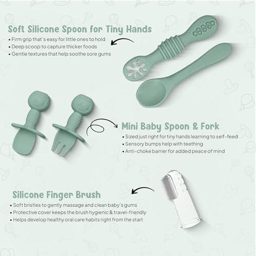 Material and Quality: Crafted from food-grade silicone, our feeding set is free from BPA, PVC, and phthalates. Durable and safe, it withstands daily use while maintaining its pristine condition.Design with Care - Spoons & Fork: Our wooden spoons and forks are crafted to be soft and gentle for your baby. The back of small silicone cutlery features sensory bumps, providing a playful texture that aids in sensory development. Thoughtfully sized for little hands, these utensils ensure easy grasping and comfortable holding, turning every meal into a delightful experience for your child. They are safe and eco-friendly.Consistently Strong Suction: Our suction plate and bowl have been rigorously tested for strong suction. The large suction base ensures plates and bowls stay securely in place until mealtime is over, promoting your child's independence in self-feeding without messy accidents. Designed for ultimate stability, our suction power outperforms smaller suctions.Invest in a Long-Lasting Toddler Tableware Set: Every piece in our set is dishwasher safe and easy to clean with soap and warm water. Safe for use in the microwave or refrigerator, our set is designed for long-lasting durability.Thoughtful Gift: Our vibrant and neutral color feeding set is the perfect gift for expecting moms, making it an ideal choice for baby showers and birthdays.