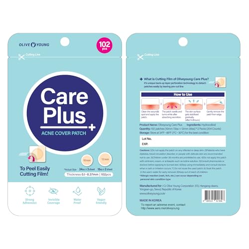 OLIVE YOUNG Care Plus Spot Patch | Hydrocolloid Acne Korean Spot Patch to Cover Zits, Pimples and Blemishes, for Troubled Skin and Face (Hydrocolloid, 204 Count (Pack of 2))