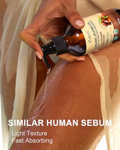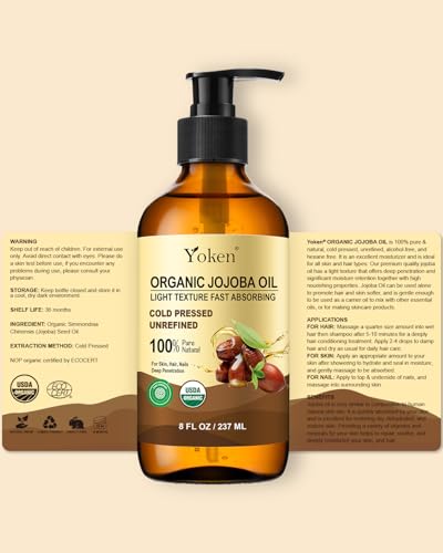 100% Organic Jojoba Oil: Yoken jojoba oil is proudly USDA Certified to meet the most rigorous standards and ultimate quality, cold pressed from responsibly grown organic jojoba seeds, extra virgin, and unrefined. Single Ingredient Oil, Chemical FreeIn Glass Bottle: Golden jojoba oil comes in an amber glass bottle for better storage. It is rich in vitamins, minerals, and loads of antioxidants for deep penetration, and almost meets all your skincare needsMultipurpose Oil: Organic jojoba oil cold pressed unrefined is light in texture, fast absorbed, has an excellent moisturizing effect on face, hair, body, nail, or beard. It works well to nourish and soften skin & hair while adding a healthy shineGentle Enough for All: Our pure jojoba oil is very gentle and ideal for all skin & hair types, even sensitive skin. Great as a jojoba carrier oil for blending with other essential oils, used as a massage oil, or natural makeup removerYoken Story: We are committed to producing skin care that goes from nature to your skin. Our products are powered by plants, Cruelty Free, Paraben Free. We substantiate our statements through third-party testing—quality, purity, and safety for the environment