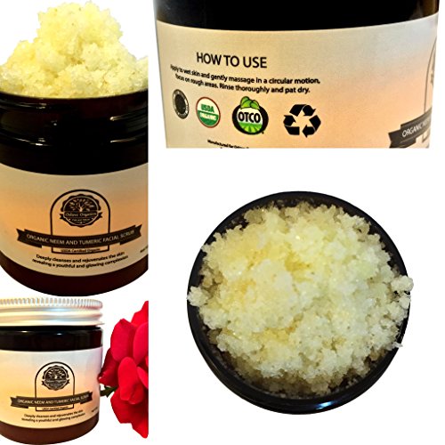HIGHLY EFFECTIVE EXFOLIATING FACIAL SCRUB: Our natural organic facial exfoliator is the answer for flaky skin which is a result of dead skin cells. One of the most important steps in any effective skin care regimen is exfoliation. Our facial scrub is highly effective for reducing the appearance of scaly skin and eliminating the effects of post shave irritation & environmental impact.THE BEST ORGANIC FACIAL SCRUB FOR ALL SKIN TYPES: The queen of scrubs! Our Neem and Turmeric Facial Scrub is not too oily, not too dry – it’s Just Right! So if you and your Spa customers have been searching for that perfect scrub, the one that can help tame oily, out of control, troubled skin needs, then ‘LOOK NO FURTHER’ this is “just right”.A TRULY UNIQUE AND REFINING EXPERIENCE: This scrub offers a truly unique and refining experience. It is lightly scented to make you fall in love instantly. Our facial scrub treatment can be used by individuals and in SPAs. Because of the powerful natural and organic ingredients, it gently and effectively eliminates the top layer of the skin known as the epidermis to reveal newer skin. After first use, you will notice soft and moisturized skin that is fresh and polished.LEAVES THE SKIN SOFT AND HYDRATED: If you have sensitive skin and would like to prevent ingrown hairs and dry skin, try this facial scrub. It unclogs pores and provides pure nourishment to the skin to enable it fight acne and prevent ingrown hairs.SUITABLE FOR EVERYONE: This all natural and organic Exfoliating Facial Scrub is great for even the most sensitive skin types. Only organic and natural ingredients without harmful chemicals, toxins and preservatives. Made in the USA in a state of the art FDA registered facility. Utilizes only the highest grade pure natural ingredients containing Organic Neem Oil, Organic Turmeric Root Powder, Organic Grapefruit Essential Oil, Atlantic sea salt and many other fantastic ingredients.