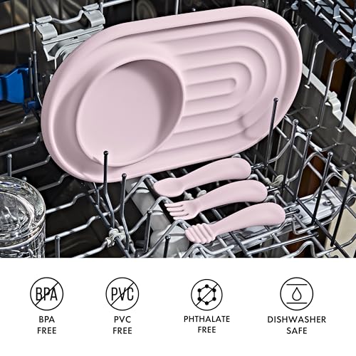 Plate with Built-in Bowl: Just right for smaller portioning and baby-led food exploration.Rippled Surface for Easier Grasping: The subtle texture helps tot practice grasping foodSectioned for Small Portions: Perfectly sized so smaller appetites won’t be overwhelmedGently Sloped Sides: Baby can scoop slippery pieces while spillage is minimizedDishwasher-safe: Durable silicone cleans easily