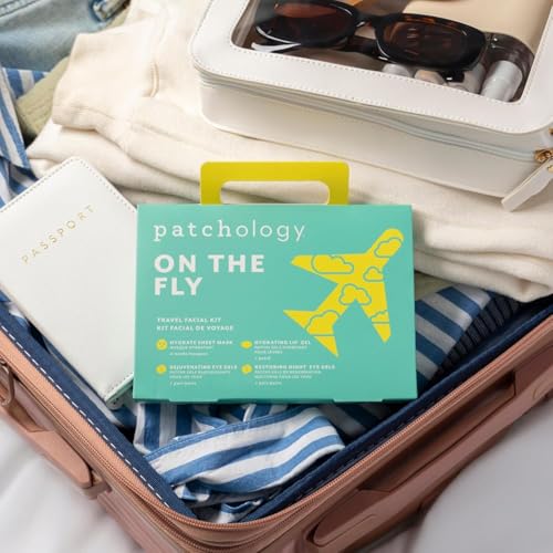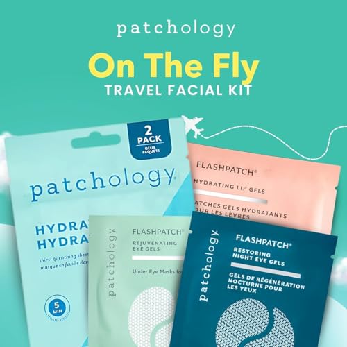 Patchology On The Fly Travel Facial Kit – Travel-Friendly Hydrating Skincare Essentials for Face, Eyes and Lips – Includes 2 Pair Under Eye Patches, 2 Hydrate Sheet Mask for Refreshed Skin,1 Lip Mask
