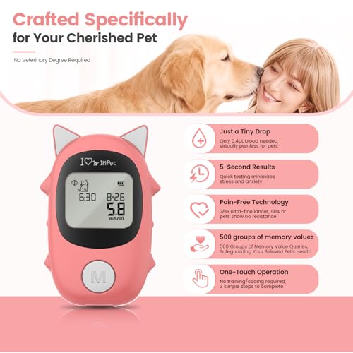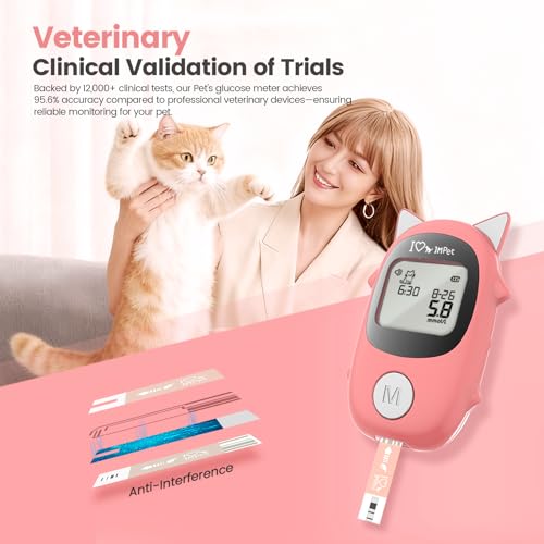 Complete Testing Kit 1 Blood Sugar Monitor Kit, 50 test strips & 50 lancets. Ready to use immediately - simply insert strip and begin testing. 28-gauge ultra-fine lancets reduce discomfort. Features backlit display and convenient travel case. Excellent solution for households with multiple pets.Universal Pet Compatibility Works effectively with dogs, cats, rabbits and other small animals. One versatile device for all your pets, with adjustable lancet depth to accommodate different fur types and skin thicknesses. Compact design enables easy portability with 5-second fast readings.Professional-Grade Health Monitoring Achieve veterinary-level precision in tracking key metabolic markers, ensuring optimal wellness for your pet. With a 500-result memory capacity, securely store and analyze historical data to monitor long-term health trends and provide the best care possible.User-Friendly Features Clear backlit display ensures easy reading in all lighting conditions. Everything stores neatly in the included carrying case for organization at home or on trips. Simplified testing procedure requires minimal steps for efficient daily monitoring.Comfort-Focused Design 28-gauge lancets combined with adjustable depth settings enable gentle blood sampling. Particularly suitable for pets requiring frequent health checks, making home testing easier with reduced stress for your companion animals.