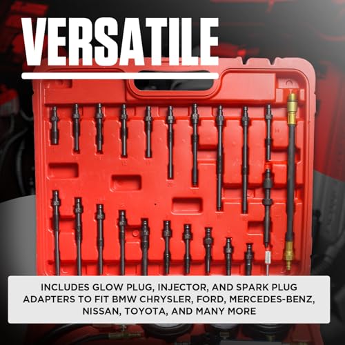 Petrol & Diesel Engine Compression and Leakage Test Kit – 47PCS Comprehensive Pressure Gauge Tool Set for Diagnosing Engine Issues Fits for Most Cars, Trucks and Motorcycles
