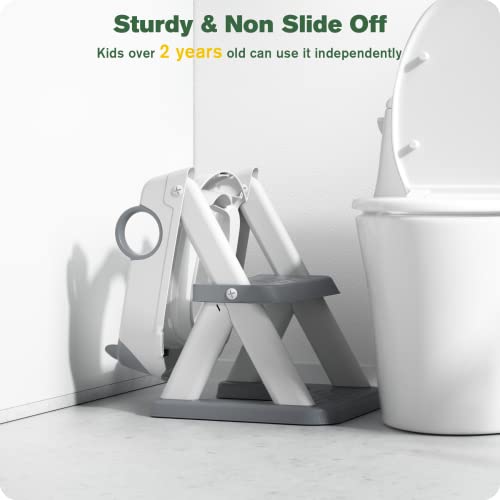 Heighte Adjustable : The Rabb 1st potty training seat features 6 adjustable positions, and we've included detachable screws so you can easily raise or lower the children's toilet ladder by up to 3 inches, ensuring a perfect fit on any surface. Our product's stability is a testament to a mother's trust in our brand.Soft Cushion : Our potty training seat with step stool comes equipped with a waterproof PVC seat cushion that is soft to the touch, providing protection for children's sensitive skin. It also remains comfortable to use during winter months without feeling cold.2-in-1 Usage : Our multifunctional toilet training seat can be used as a step stool for children to reach higher places, making it convenient for your little ones to brush their teeth or reach for items. Its lightweight and compact design make it easy for children to carry on their own, and the foldable design makes it easy to store.Upgraded Version : We've improved our toilet step stool by creating a sturdy triangular structure that's designed to support children as they climb. Plus, we've widened the stepping surface to 15.7"x5.2", providing more space for children to turn around and eliminating any fear they may have of climbing.Easy to Assemble : Our potty seat for toddlers comes with instructions and only requires one coin for assembly, which can be completed quickly in 5-10 minutes. The Rabb 1st kid toilet training seat fits all standard and elongated toilet seats, including V, U, and O shapes, but is not compatible with square seats.