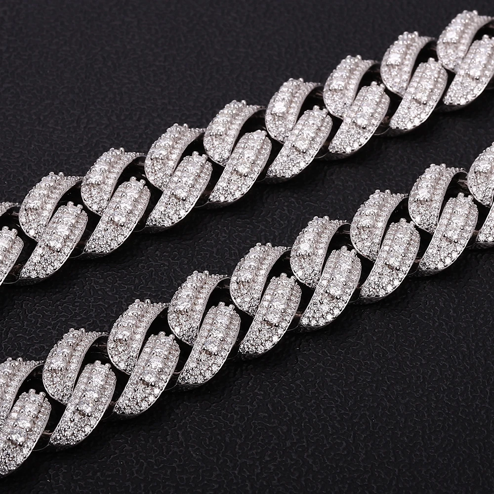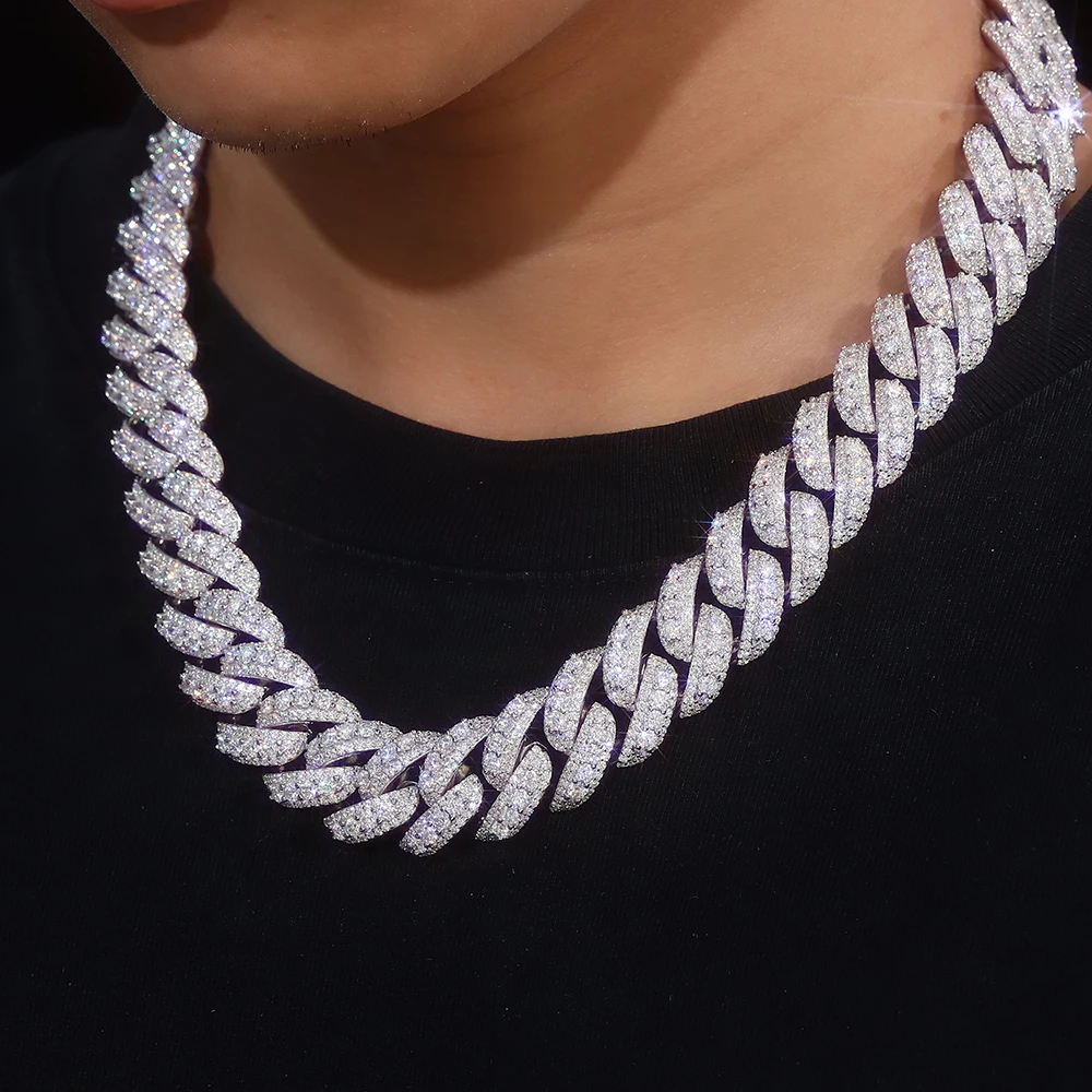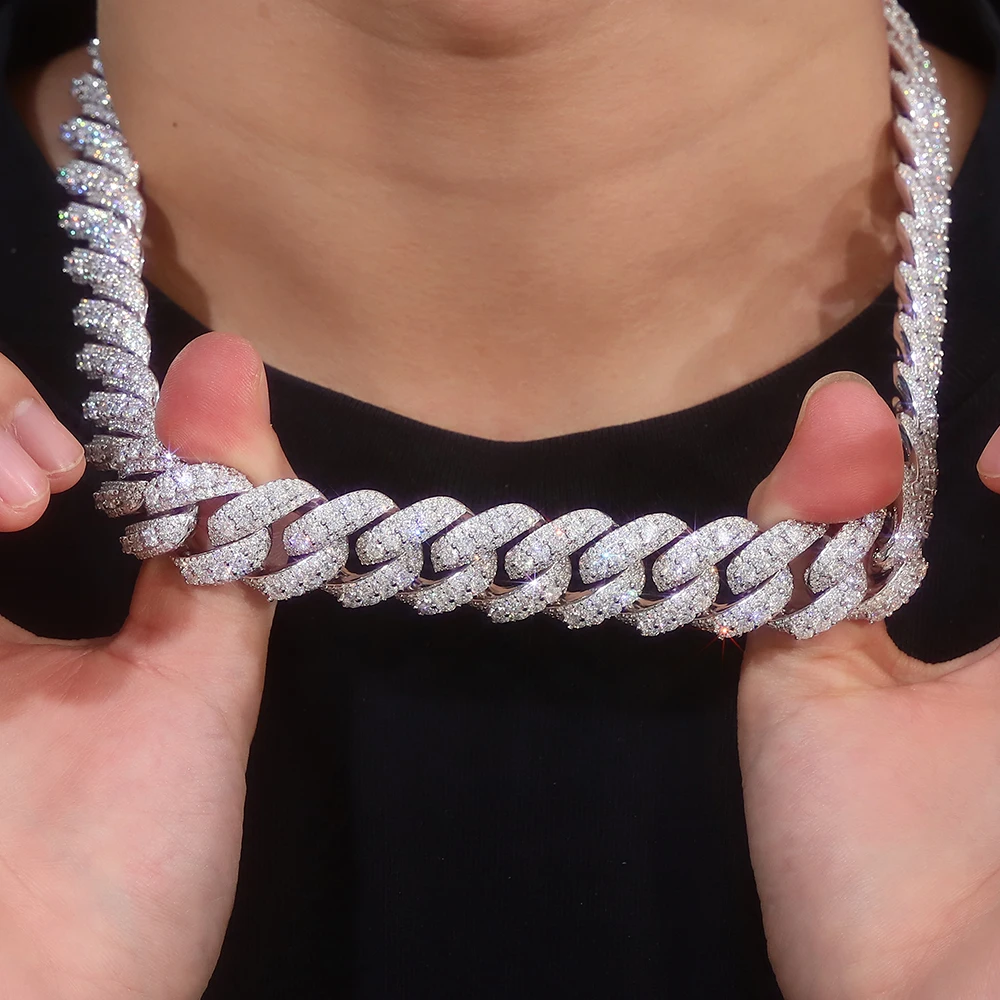 Provence Moissanite Cuban Chain Necklace for Men 18mm Hip Hop Link Chain for Man Miami Rapper Necklaces Rock Cuban Link Necklace