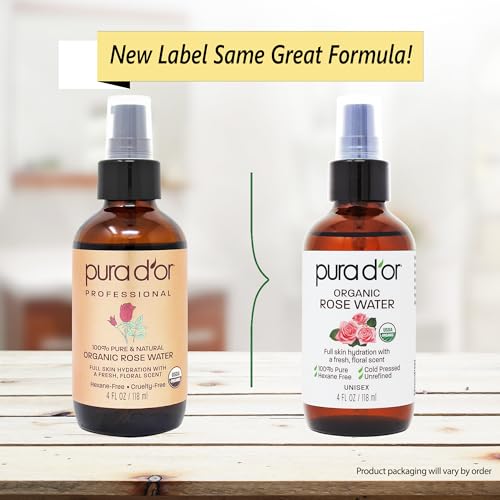 PURA D'OR 4 Oz Organic Rose Water Toner - USDA Certified 100% Pure Full Skin Hydration, Control Excess Oils- Cleanses & Softens - Promotes Healthy Skin - for All Skin Types (Packaging May Vary)