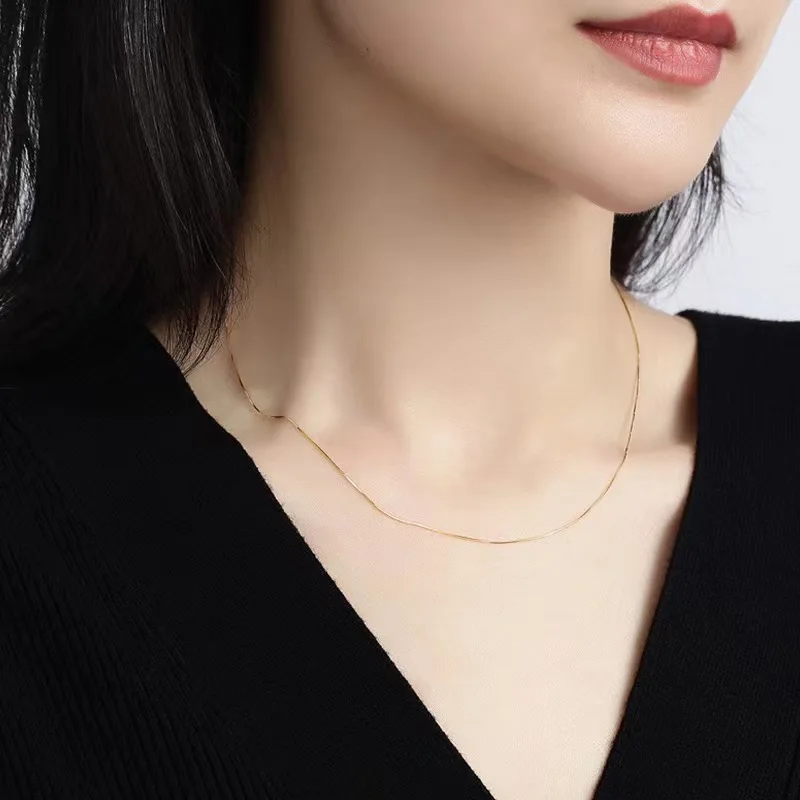 Real 18K Gold Super Silky Snake Bone Necklace Pure AU750 Versatile Style Fashion Women's Necklace .18K gold is not allergic.