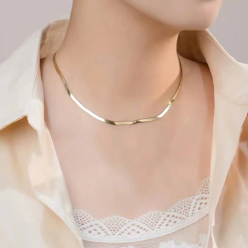 18K Gold Blade Necklace, Bracelet. Light luxury and simple style. 18K gold will not fade and will not be allergic.