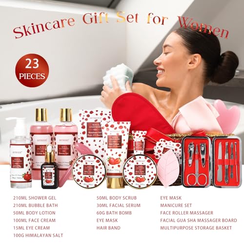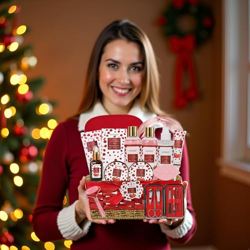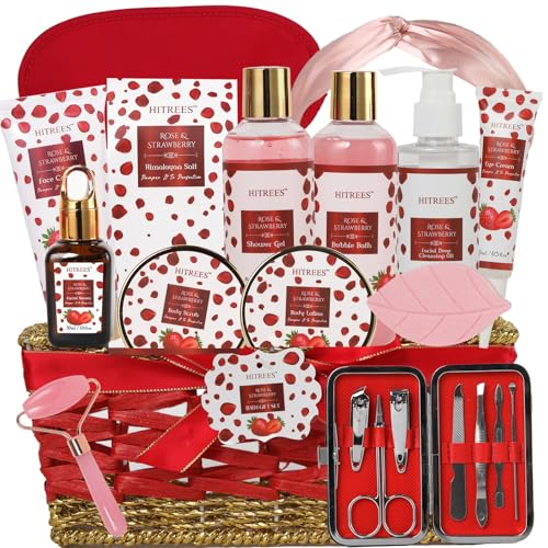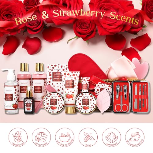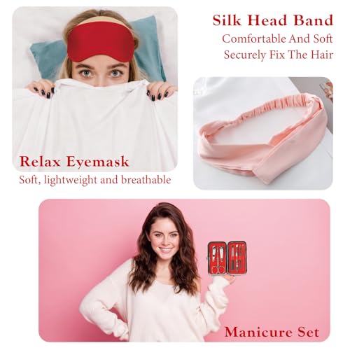 Comfort And Pamper: The Spa Kit For Women Come With a Manicure Set, Hair Band, Eye Mask, Facial Gua Sha Massager Board, Shower Gel, Bubble Bath, Body Lotion, Face Cream, Eye Cream, Himalayan Salt,Body Scrub,Facial Serum and Facial Deep Cleansing Oil Elegantly Packed Inside a Gift Box To Delight The Recipient No Matter Who They AreSpa Gifts Basket That Radiates Warmth And Positivity: The Bath Spa Gift Basket For Women, A Perfect Blend Of Warmth, Care, And Relaxation. Featuring Luxurious Spa Essentials Like Soothing Bath Bomb, This Spa Gift Basket Transforms Any Space Into A Tranquil Spa Retreat. Perfect For Women Of Most AgesGreat For Your Skin- Our Luxury Rose Spa Gift Set Are Made From Natural Ingredients, Moisturize and Protect Your Skin. All Ingredients Used In This Spa Basket Are Carefully Sourced For Your BenefitEye-Catching Design Red Gift Sets For Women : This Multipurpose Storage Basketcomes in a Stylish, Reusable Container Inside, You'll Find a Luxury Spa Kit, Designed For a Pampering Experience. Durable Packaging Ensures Everything Stays Safe, and The Variety Of Items Means You Get Great Value Without Feeling CheapPERFECT Gift Basket: Whether it's a Birthday, Thanksgiving, Christmas, Valentine's Day, Or Any Occasion, Or Just Thinking Of You, Gift Basket Is The Perfect Way To Show Your Love and Care. It Not Only Provides a Luxurious Spa Experience But Also Brings a Burst of Joy