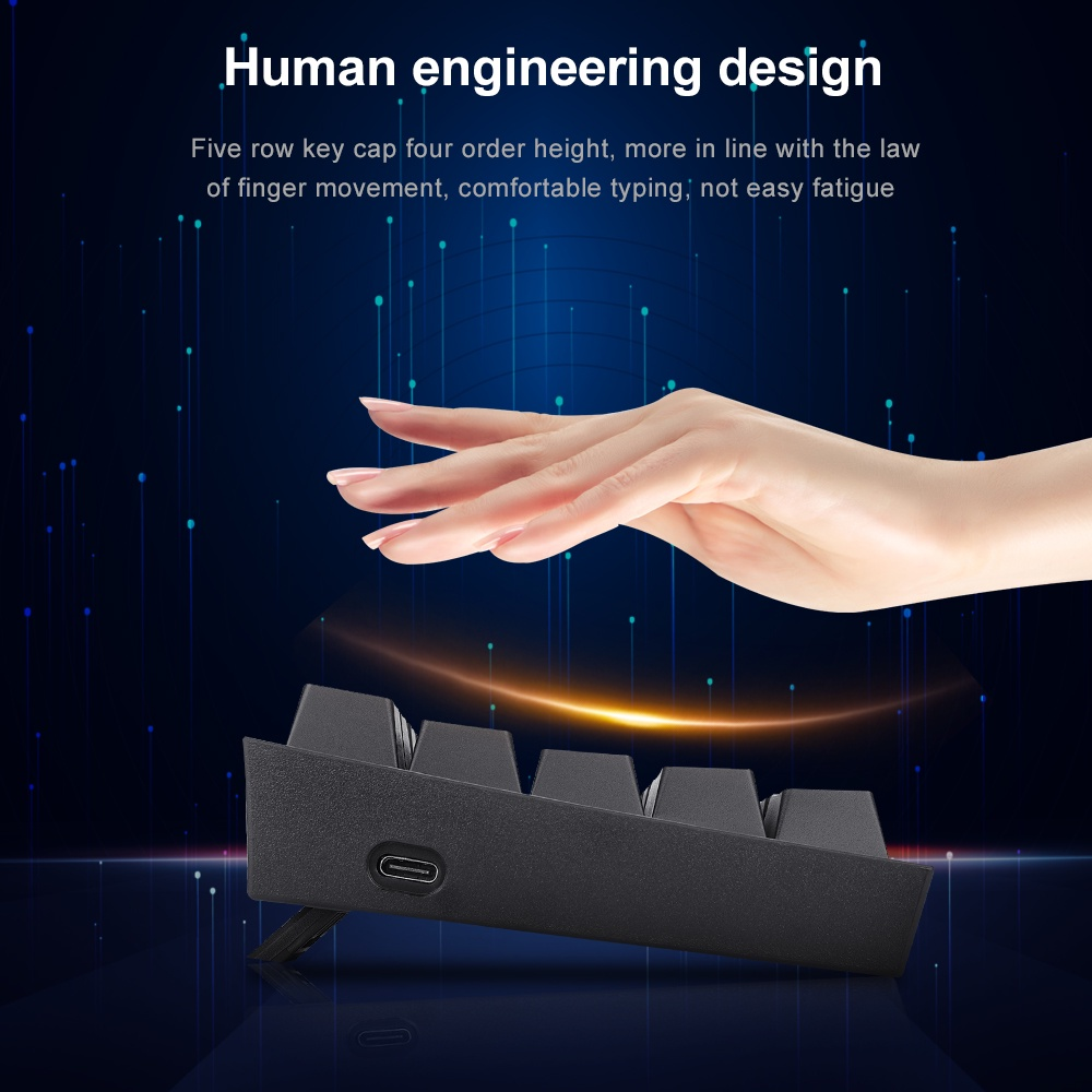 layout wired keyboard in a refreshing style with a no-brainer deal economic offer.     Compact 61 keys with selected keycaps, dedicated for FPS Gamers and efficient working.
