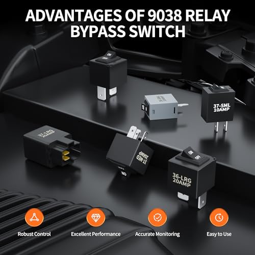 Wide Compatibility & Effortless Control: This Relay tester kit is designed for seamless compatibility with a wide range of vehicles, including Audi, BMW, Volkswagen, GM, Chrysler, and more. Our relay bypass kit also replaces multiple relay models (9038, 9036, 9037) and provides direct control over fuel pumps, window motors, headlights, and other componentsSave Time & Diagnose Faster: This diagnostic tester is very convenient. Quickly identify electrical issues and save valuable time during repairs. Simply plug the relay tester into the fuel pump relay position to gain direct control over the circuit and pinpoint problemsReliable Performance & Built to Last: Crafted from high-quality materials, this relay tester is rigorously tested to meet or exceed OEM standards. Our relay bypass switch kit enjoy consistent operation with its 20 amp continuous and 30 amp surge current (12V) capacity, ensuring long-lasting performanceComplete Kit for Versatile Applications: This 6-pack 9038 includes multiple Relay Testers, giving you ample options for a variety of repair needs and making it a valuable addition to any mechanic's tool boxComponent Included: Our product include relay bypass switch kit 9036-1(36-LRG 20AMP), 9036-2(36-MED 20AMP), 9036-3(36-SML 10AMP), 9037-1(37-LRG 20AMP), 9037-2(37-MED 20AMP), 9037-3(37-SML 10AMP)