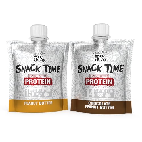 Rich Piana 5% Nutrition Snack Time , Squeezable Protein Shots , High Protein Snack Pouches , Egg White Peanut Butter Protein Snacks , 10-Count (Chocolate Peanut Butter)