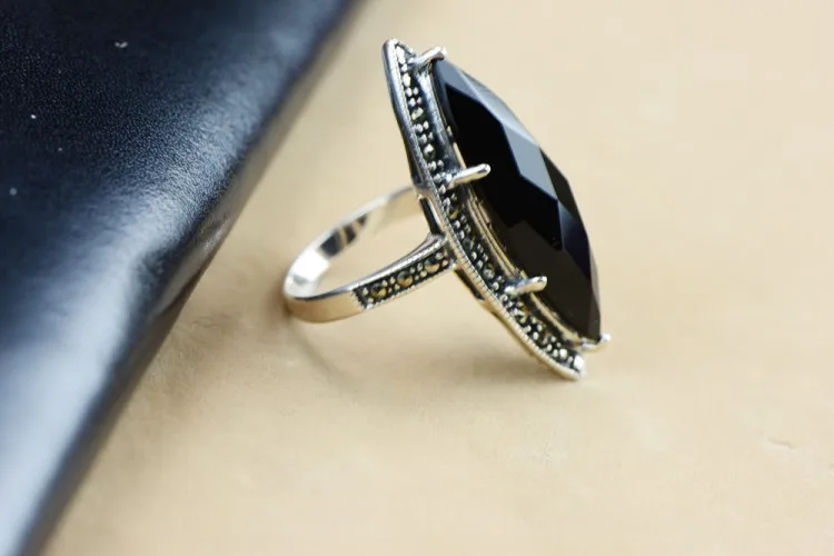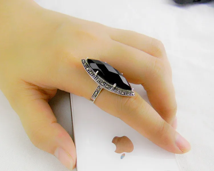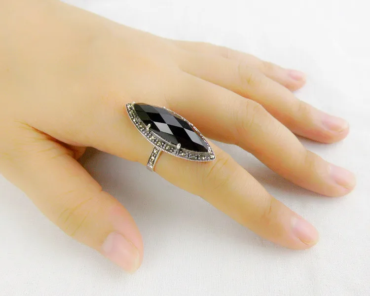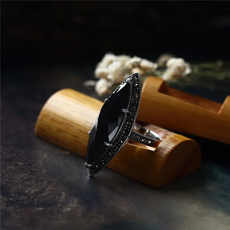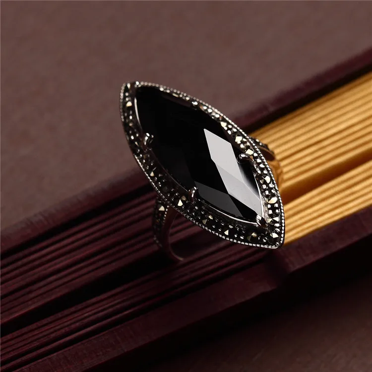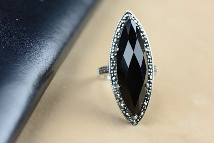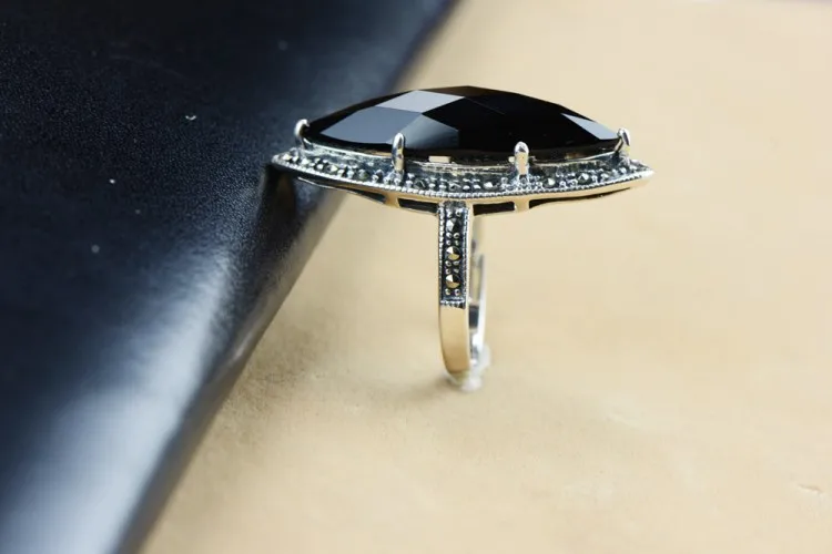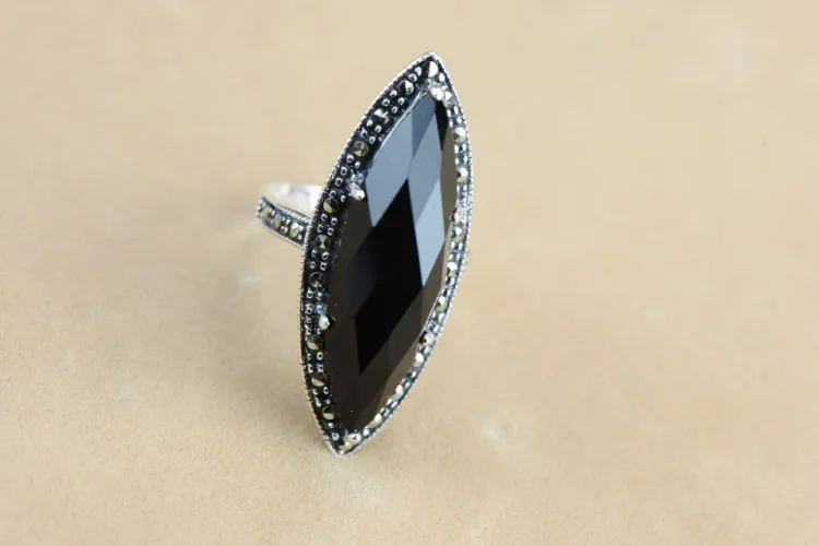 Quality commitment: guarantee pure silver. If you detect that our product is counterfeit, we will compensate you ten times the purchase amount. Note: manual production and manual measurement. There may be some errors. Please refer to the actual product for product data. Material: S925 sterling silver Inlaid: Black agate Marcasite Width: 35*13 Weight: about 6.2g