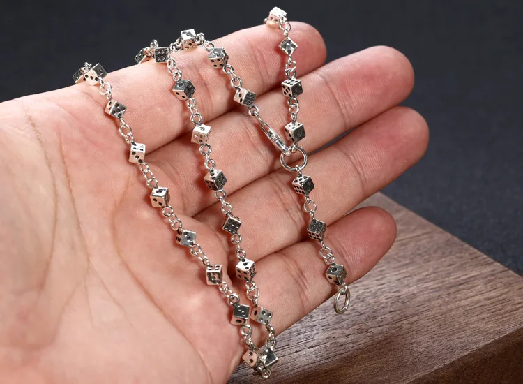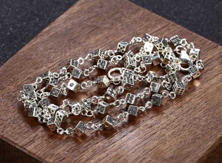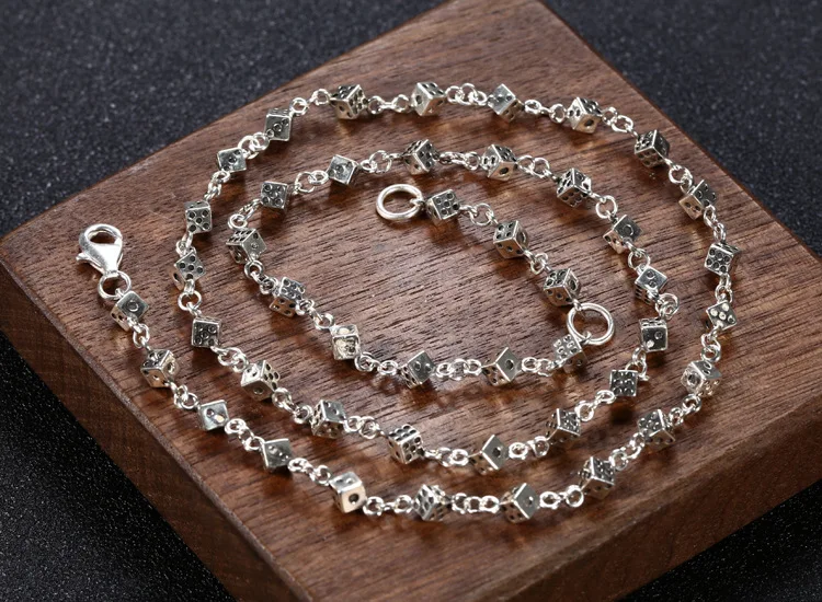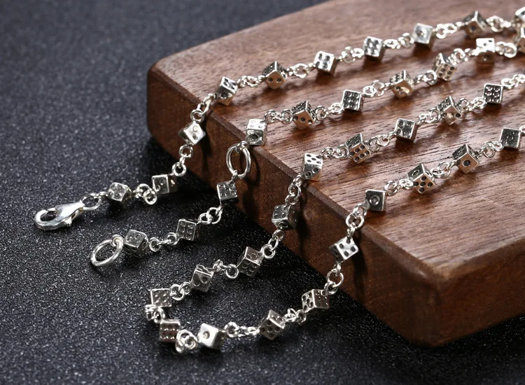 S925 Sterling Silver Couples Personality Dice Cube Chain Fashion Necklace For Male and Female Jewelry