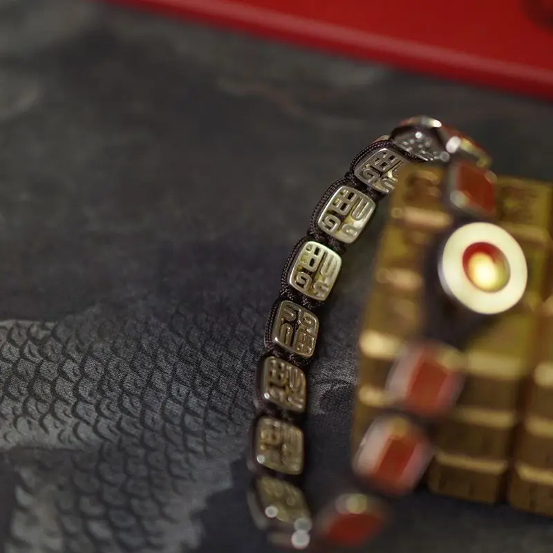 S925 Taoist Dragon Tiger Mountain Taboo Bracelet Fashion Retro Personality Ethnic Style Old Chinese Hand-made Rain Gradually Ear