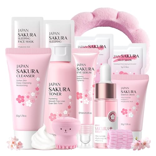 【Japan Sakura Skin Care Set】The teen skin care kit skin care for kids includes a cleanser, toner, facial serum, eye cream, face cream, 2 sleeping masks, 2 mud masks and cleansing brush to meet the needs of the whole process. The hydrating skincare set skin care for teens 10-12 is simple and efficient, clean, hydrating and anti-aging in one step, with a headband and a pair of wrist bands for easy use.【Multiple Skin Care Benefits】Our skin care sets & kits for teen girls offer a variety of facial skin benefits that make cleansing, moisturizing, and anti-aging effortless.Each product in the travel size facial kit for women works synergistically to provide a firmer, more elastic appearance to the skin!【Natural Sakura Ingredients】Our sakura skincare kit for women Teen Girl Gifts Birthday is packed with natural cherry blossom extract, vitamins and a variety of gentle skin care ingredients for all skin types.The kids skin care set for girls ages 8-12 can penetrate into the bottom of the skin, constantly replenish skin moisture, to achieve long-term moisturizing skin care.【Ideal Skincare Gift Set】Our sakura skin care set skin care for kids 8-9 is the perfect gift on Valentine's Day, Easter Basket, Christmas, birthday, Thanksgiving, Mother's Day.Treat yourself or your loved one to a luxurious Japanese skin care treatment with our smooth skin care routine kit for women gifts【Travel Size Skincare for Women】 Our anti aging skincare for girls 10-12 essentials is available in convenient sizes.Whether you are on business or traveling, simply bring our travel skincare set for women to meet your daily skincare needs and keep your skin healthy and beautiful!