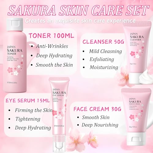 Sakura Skin Care Set for Women Birthday Gifts for Teen Girls - Skin Care for Kids - Skincare for Girls 10-12 - Kids Skin Care Set for girls Ages 8-12,Teen girl Christmas Gifts Skincare Set