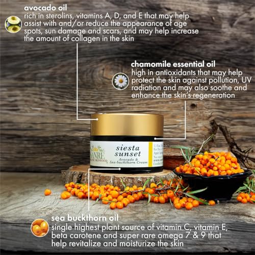 SanRe Organic Skinfood - Siesta Sunset - 100% USDA Organic Beneficial Avocado & Praised Sea-Buckthorn Cream For Dry to Mature Skin