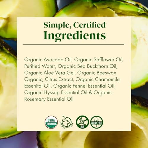 USDA ORGANICBeneficial Avocado Oil & Praised Sea-Buckthorn Oil CreamAssists in Renourishing Stressed or Aging SkinFor Dry to Mature Skin1.1 oz (33 ml)