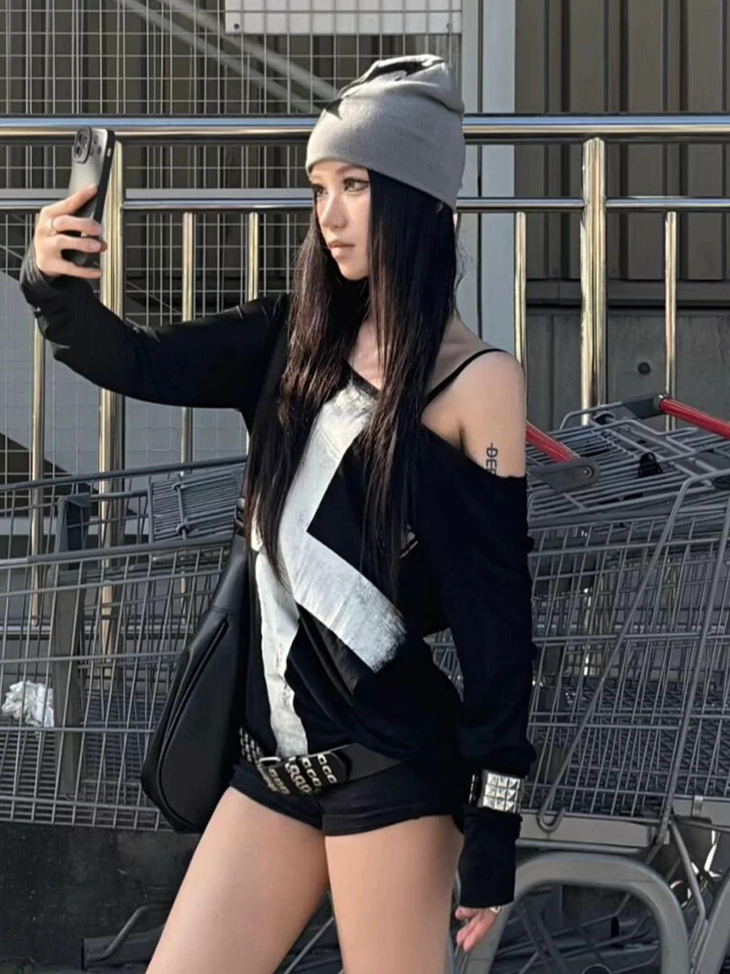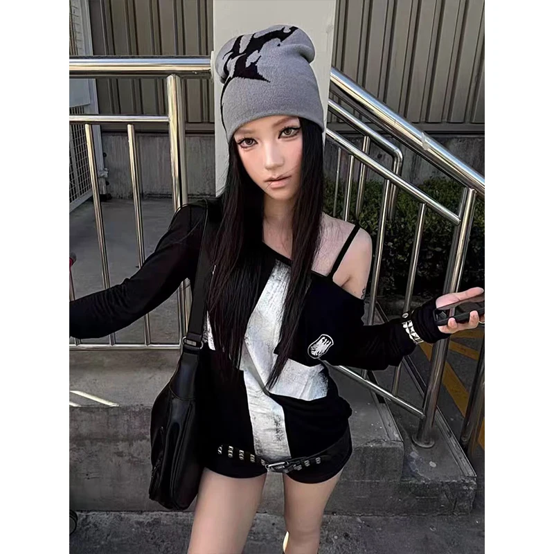 Seeslim Print Cross Graphic T Shirts Woman Long Sleeve Blck Goth Autumn Spring Tops Tees Female Clothing 2000s Clothes Y2k Chic
