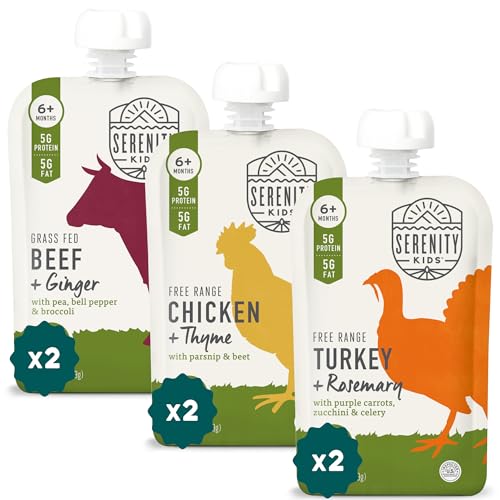 Flavor Adventure Awaits: Dive into Serenity Kids' Meats & Herbs Variety Pack for a taste explosion in every baby pouch. With these baby puree pouches, your tiny foodie can explore organic baby food goodness, setting sail on a flavor journeyNutrient Powerhouse: Packed with quality protein and healthy fats, these pureed baby food pouches support growth and fuel adventures. They're perfect for expanding taste buds and introducing little ones to tasty baby food meat and protein baby foodVeggie-First Nutrition: Skip the sugar and dive into organic veggies and ethically sourced meats with these organic baby food pouches. Offer your baby a savory palate experience with these baby food stage 1 pouches that go beyond the ordinaryInspired by Nature: Crafted to mirror breast milk's macros, these organic baby food pouches provide balanced meals with only natural ingredients. Introduce meat purees for baby food and let your little one discover protein-packed baby meat nutritionEco-Friendly and Delicious: Choose Serenity Kids for Land to Market verified beef that supports soil biodiversity. These organic baby snacks are perfect for cozy days, offering a delightful way to embrace pureed baby food and little ones alike