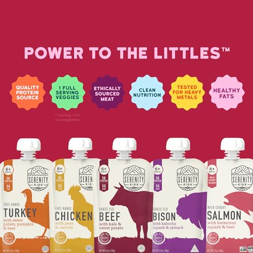 SERENITY KIDS NUTRITION POWER: Dive into tasty flavors with Serenity Kids' meat puree pack, perfect for your little one's growing taste buds. These pouches are loaded with nutrient-rich goodness, making snack time both fun and wholesomeEASY PEASY MEALTIME: Forget the chaos with these handy pouches. Just open, squeeze, and watch your kiddo enjoy every bite, letting you soak up more of those special moments togetherPURE & SIMPLE INGREDIENTS: Ditch the additives and embrace pure, natural flavors. Each pouch delivers real taste minus the sugary distractions, keeping your baby's diet clean and simpleON-THE-GO GOODNESS: The ultimate snack for your tiny adventurer. Toss a few in the diaper bag for road trips, park days, or just a fun day out, ensuring your baby never misses a nutritious mealFEEL-GOOD FEEDING: Rest easy knowing you’re feeding your baby ethically sourced ingredients. Serenity Kids supports small farms and humane practices, offering peace of mind with every squeeze