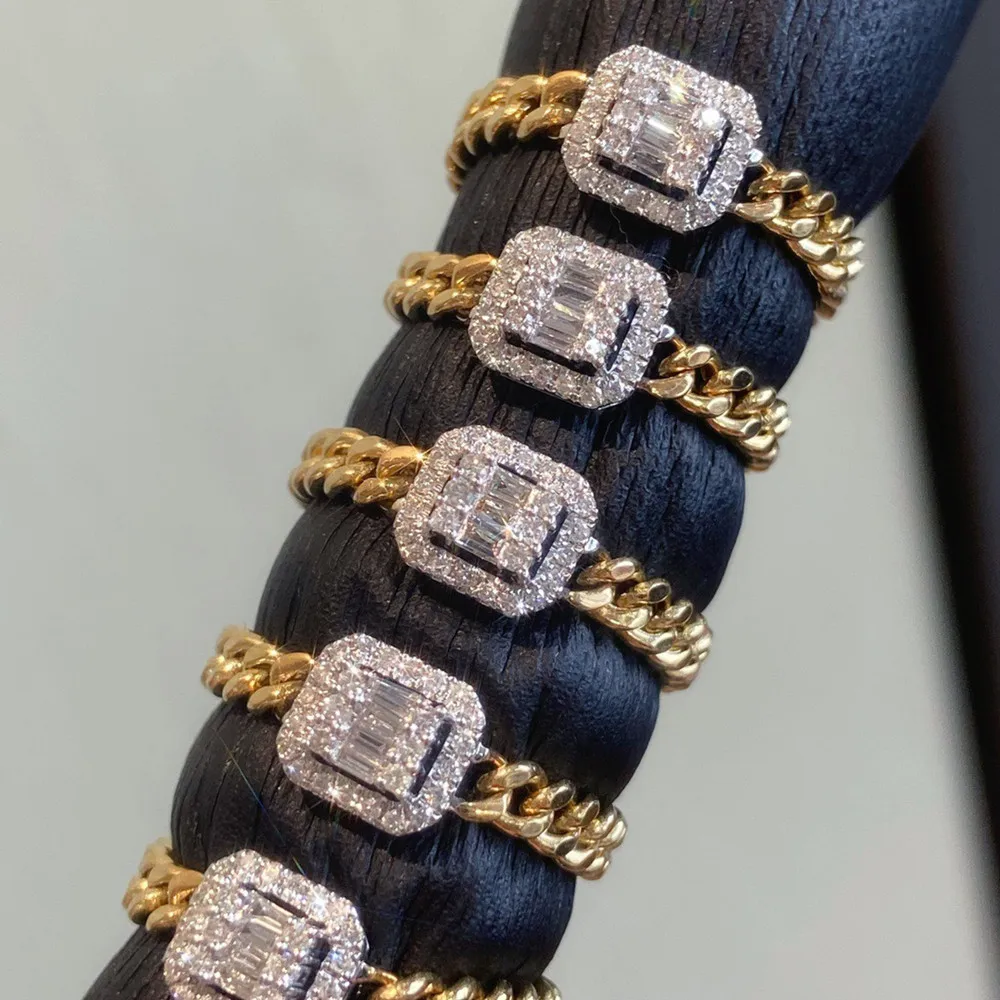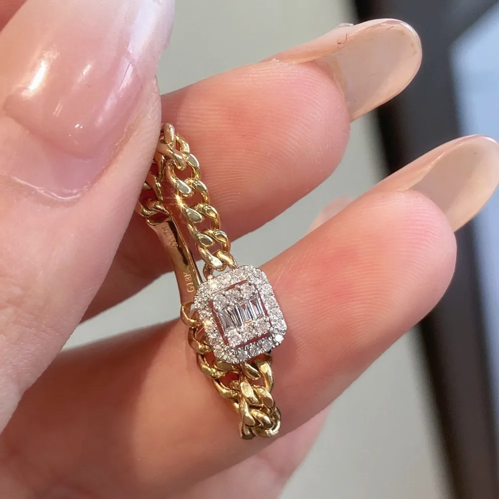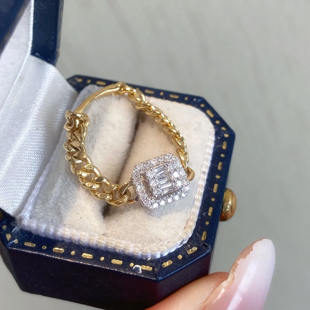 Shelly Trendy Real 18K Solid Yellow Gold AU750 Jewelry Sugar Square Natural Diamonds Cuban Chain Rings for Women Fashion Lady