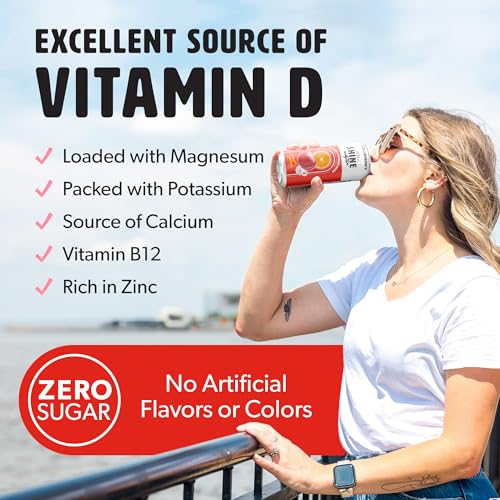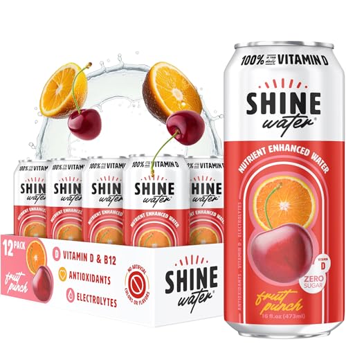 Sunshine in a Can: Nearly half of the US is Vitamin D deficient. Every can of ShineWater has the full daily value of Vitamin D, making it a powerful vitamin drink with electrolytes. Contains plant-based antioxidants with zero percent added sugar.100% of Your Daily Vitamin D: This clear fruit water is developed by a physician. This nutrient-enhanced Vitamin D Drink meets 100% of your daily Vitamin D requirements, supporting overall health and wellness with every sip.Pure & Natural Flavor: Water with electrolytes free from artificial flavors, colors, or preservatives, ensures a clean and wholesome hydration drink experience. Enjoy our refreshing flavors: Strawberry Lemon, Fruit Punch, Peach Mango, Watermelon Blackberry, Coconut Lime, or Acai Mixed Berry.Zero Sugar, Low Calorie, & Sustainable: Embrace a healthy lifestyle with our zero-sugar, low-calorie, and sustainable hydration drink water with electrolytes. ShineWater is gluten-free, made in the USA, and crafted with Kosher ingredients.Nutrient-Rich Formula: ShineWater goes beyond just Vitamin D and hydration. This nutrient-packed water is infused with Vitamin B12, Folic Acid, and key electrolytes. Experience the benefits of healthy water with the added power of plant-based antioxidants, Magnesium, and Zinc.