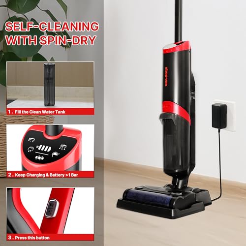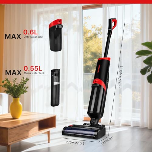 Vacuum Mop All-in-One: As a mop vacuum cleaner, it combines vacuuming and mopping in one step, handling both wet and dry messes with ease and reducing the time spent on daily cleaning.Low Noise & Lightweight Design: With only 75dB noise, this cordless vacuum won’t disturb children or pets. Weighing just 7.5lbs, it’s easy to carry between rooms or upstairs for effortless whole-home cleaning.Smart Voice & LED Display: This mop vacuum cleaner for hard floors guides you with voice prompts, while the LED display clearly shows battery life, cleaning modes, and water tank status in real time.Ergonomic Handle & Self-Cleaning Roller: The ergonomic design ensures comfortable handling. The self-cleaning function keeps the mop vacuum cleaner roller fresh without hand washing.Cleaning Agent Usage Tips: If a cleaning agent is needed to improve cleaning performance, it is recommended to use a non-foaming cleaner. The use of foaming cleaners may cause damage to the machine's internal components and affect its normal operation.