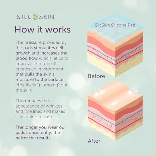 Smooth fine lines and wrinkles - Get smoother and healthier skin with the SilcSkin medical-grade silicone face patches (overnight eye patches, brow pads, and multi-area pads). These help with lines caused by aging and sun exposure.Gentle and effective face patches - SilcSkin silicone pads are designed with soft silicone that won’t tug on your delicate skin and gently exfoliate the temples, cheekbones, nasolabial folds, and other tricky facial areas. Hypoallergenic reusable pads, safe for daily use.Maximize the effect of skin care products - Apply your existing eye creams, serums or gels (do not use with topical Retinoids, AHA’s or BHA’S). Apply the SilcSkin Pads over your product for 10 minutes for maximum absorption. Remove and wash the pads with SilcSkin Cleanser. Reusable again as an overnight treatment without product.Comfortable to use while sleeping - SilcSkin silicone patches are applied topically to the face preferably before sleeping. The wrinkle pad warms up quickly after coming into contact with your skin. It doesn't pull or pinch, so won't interfere with side sleepers getting a good night's sleep.Feel your best with silcskin - Get that extra boost of confidence with our Silc Skin Silicone Patches. SilcSkin products are natural, clinically proven, and incredibly comfortable, giving a hydrating experience for all skin types and tones – one size fits all. We offer solutions for wrinkles and fine lines!
