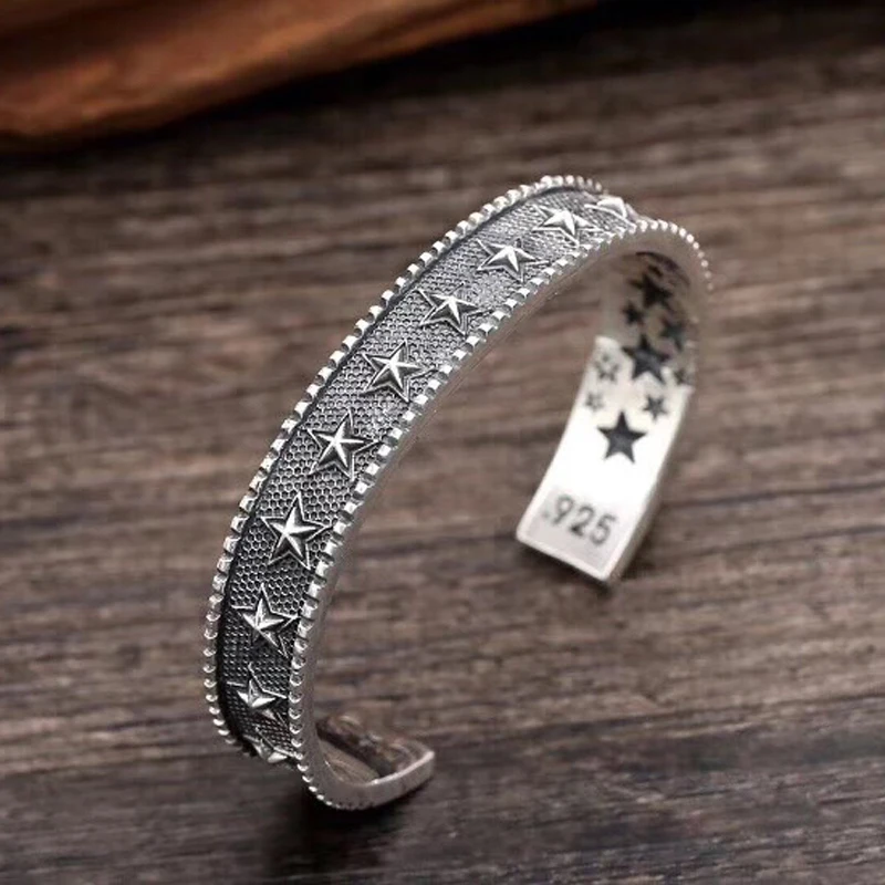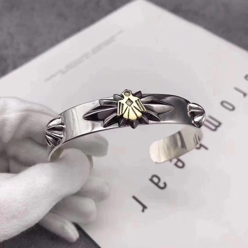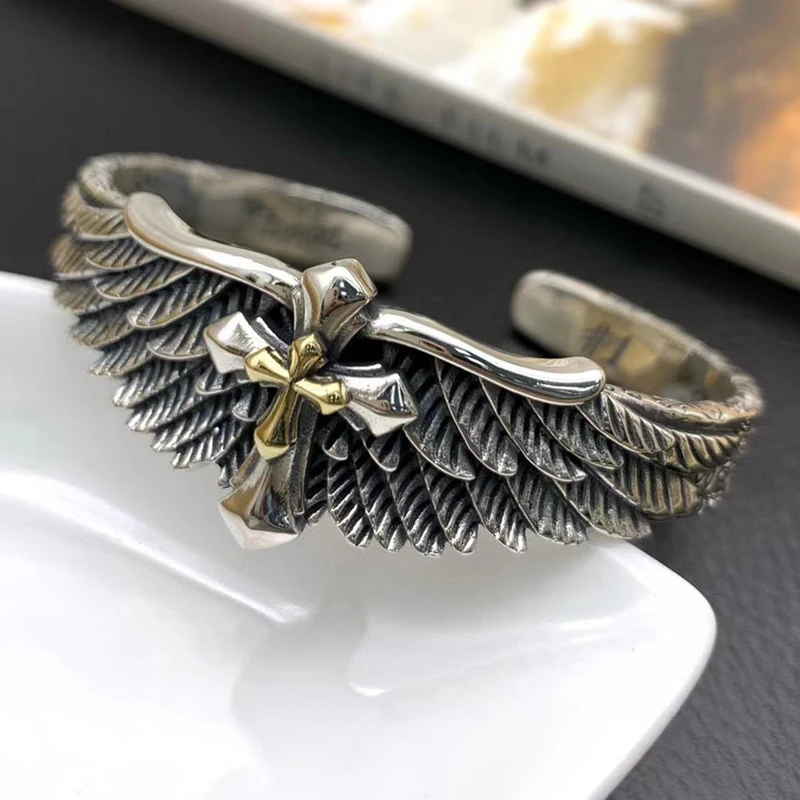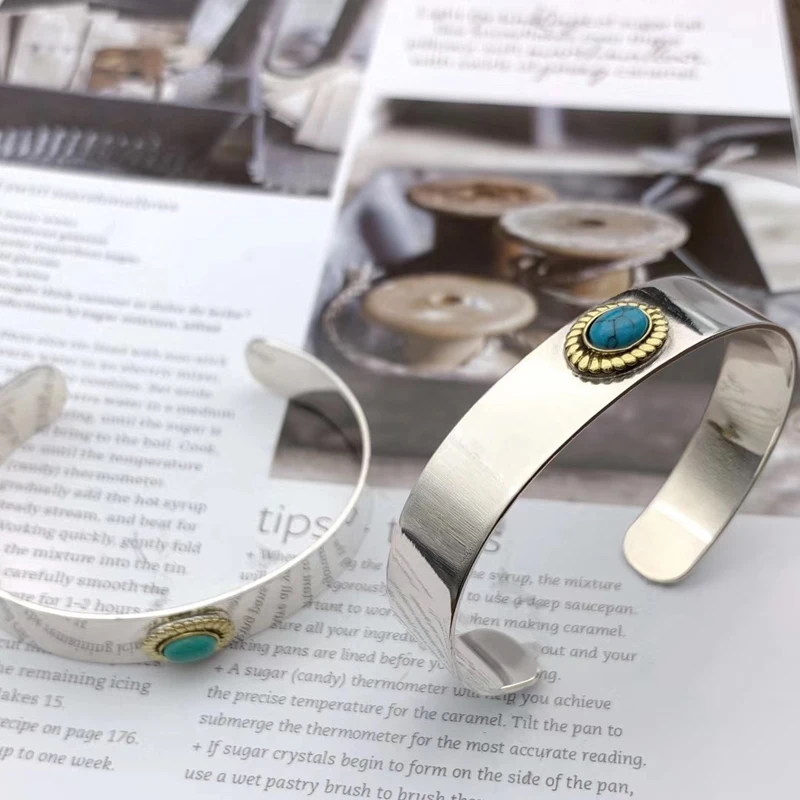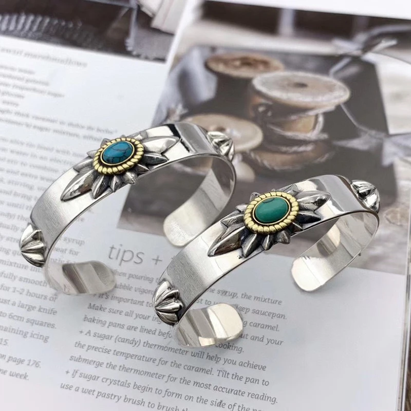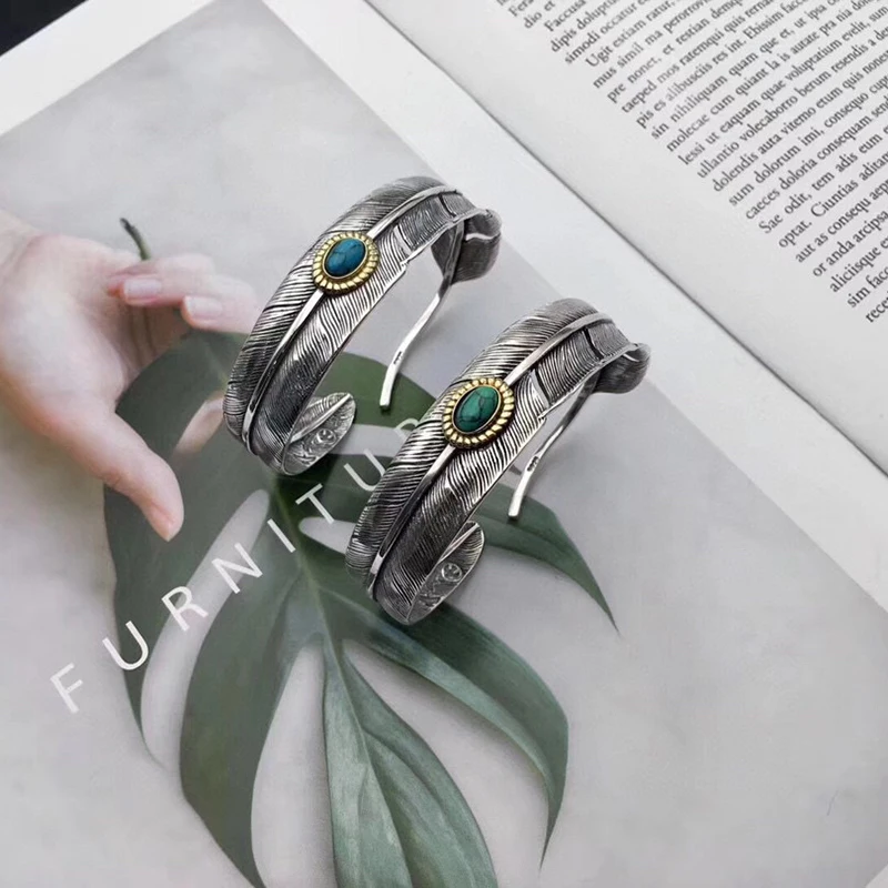 Silver Feather Eagle Turquoise Open Bracelet Personalized Retro Cross Pentagram Fashion Broadband Bracelet