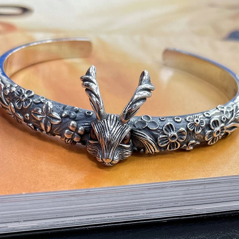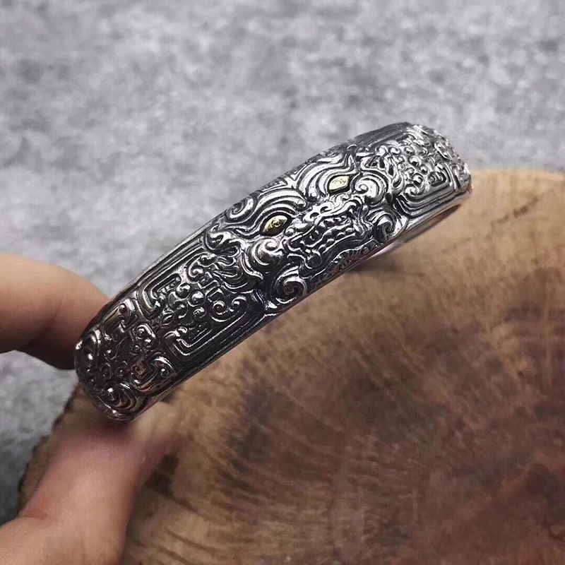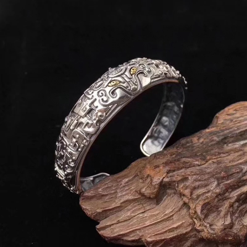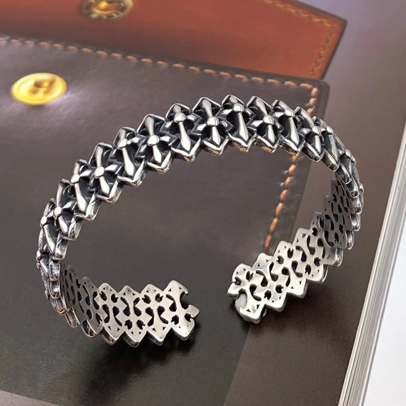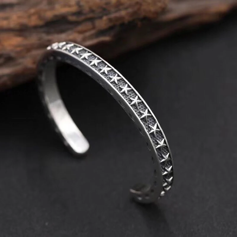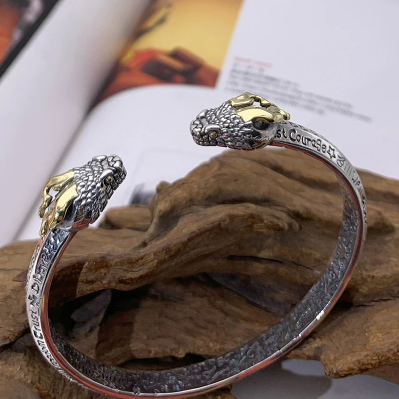Silver Feather Eagle Turquoise Open Bracelet Personalized Retro Cross Pentagram Fashion Broadband Bracelet