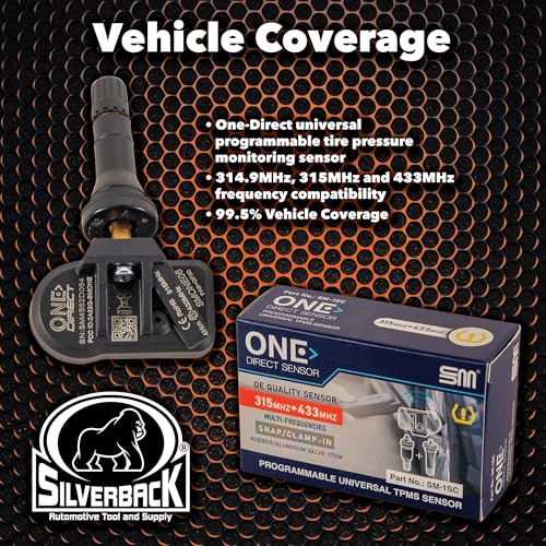 Quality - Built on the same automated platform as many OE TPMS sensors utilizing state-of-the art manufacturing technology and machines. The One-Direct TPMS Sensor is designed and manufactured to OEM quality standards and requirements, replicates OE functionality, including auto-locate technology, and is future proofed to support new and pending OE system technologies.Vehicle Coverage of 99.5% - One-Direct universal single SKU tire pressure monitoring sensor combines 314.9MHz, 315MHz, and 433MHz frequencies into a single sensor.Specifications - Programs in seconds, extremely strong signal strength and utilizes Maxell OE performance battery for long life. Once programmed, One-Direct TPMS Sensor performs like an OE replacement sensor and can be installed into the vehicle’s rim. The signal strength does allow the sensor to be programmed through the tire if necessary.Tested and validated to last 8.5 years battery life span (calculation is done based on driver driving vehicle 5.5 hours per day 365 days, using transmission of OE GM common protocol which required more power to generate the signal. This test is performed based on the same OEM requirementsSpecifications - Tire valve is rated for 80psi, top speeds of 130MPH utilizing anti-rotational technology in the tire valve and keeps operating under extreme temperatures. One rubber snap-in valve comes with each sensor. The self-tapping T10 screw provides better torque and locks the valve to the sensor for a tighter, longer-lasting