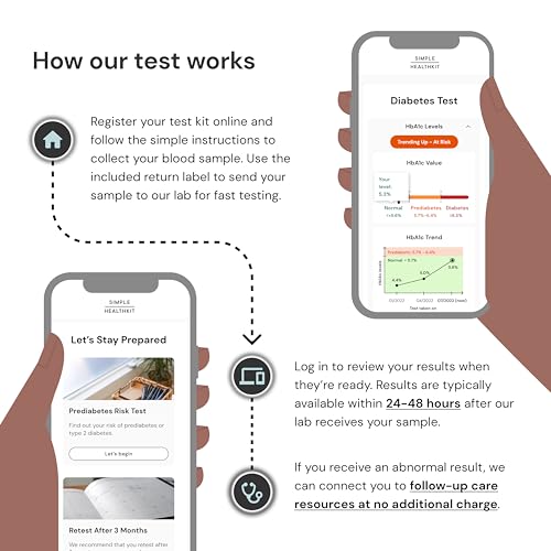 Fast, Simple, Private: Collect your blood sample from the comfort of home and send it to our lab for testing. Once the sample is received by our lab, your online results are typically available within 24 - 48 hoursHbA1c Results: Your healthcare provider may use HbA1c test results to help diagnose and monitor conditions such as diabetes & prediabetesFree Follow-Up Care: If you receive a positive or abnormal test result, follow-up care is included. No extra charge. No hidden fees. It's that simplePhysician Approved, HSA / FSA Eligible, Test Intended for 18+ Only. Not Available in NY. Lab processing is included with your test purchase. Lab is CLIA Certified and CAP Accredited. Results delivered through a HIPAA-compliant portalOur Mission: To democratize world-class care and bring health equity to communities that need it most. Everyone deserves answers. Insurance or not. That’s why we re-engineered testing and built world-class care to work for more of us