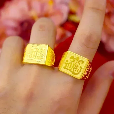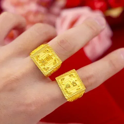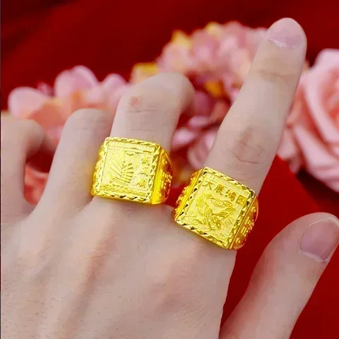 Smooth sailing 18K real gold ring pure 999 mens AU750 fashionable dragon pattern adjustable blessing gift for friends