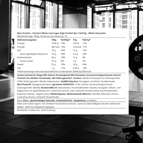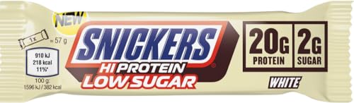 High Protein Content: Contains 15g of protein per bar for muscle recovery and growth.White Chocolate Flavor: Creamy white chocolate flavor provides a delicious treat.Gluten Free: Suitable for gluten free and low carb diets.Low Sugar: Contains only 2g of sugar per bar.Snickers Brand: From the popular Snickers candy bar brand.