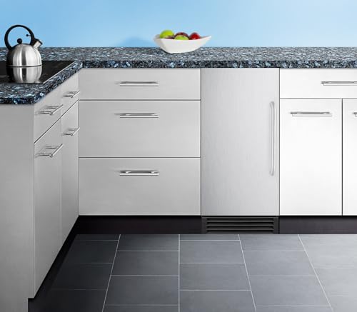 Built for quality in ADA compliant spaces: This unit’s front-breathing cooling system and fully finished sides allow built-in or freestanding use. A 15” width makes it ideal for any tight location and the 32 3/8" height fits under lower ADA compliant counters. This model comes equipped with an internal pump allowing more flexibility in where it can go.The clear ice you want when you want it: This unit can make up to 50 pounds of clear cube-shaped ice, with an adjustable bin capacity that can temporarily hold up to 25 pounds. The ice is produced in sheets and can be easily broken into cubes sized at 7/8" x 7/8" x 7/8".Everything you want in an ice maker: This unit is NSF listed for use in commercial establishments and is ENERGY STAR certified for commercial use. An insulated storage bin helps ice stay solid longer in this cold-protected bin. Ice scoop included for your convenience.Dimensions: 32.56" H x 14.5" W x 23.5" D, 50 lb. Production Capacity, *If installing under a counter, you must add a notch for the hinge that reaches 32 9/16"*.