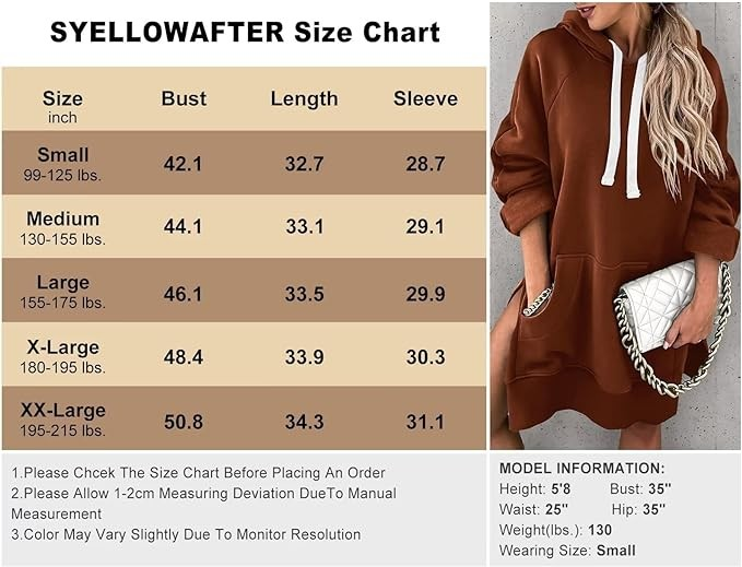 ♥ Syellowafter Super hoodie dress with front pocket sweatshirt - fabric made of cotton blend, light and warm soft. Rayon, cotton, spandex. This is a basic garment for every fashionable woman or teenage girl, suitable for fall and winter, comfortable and good skin feeling. Enough to wear or perfect layered pieces!