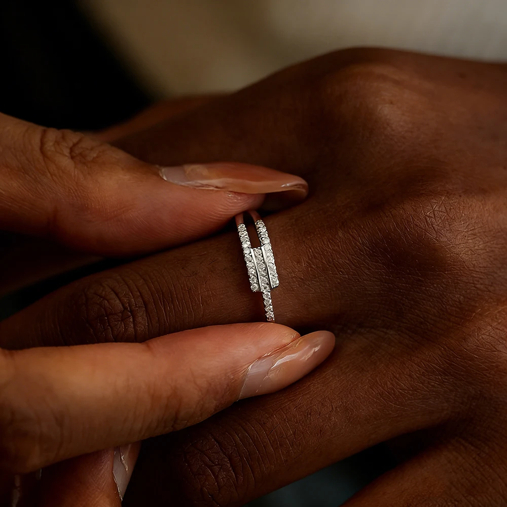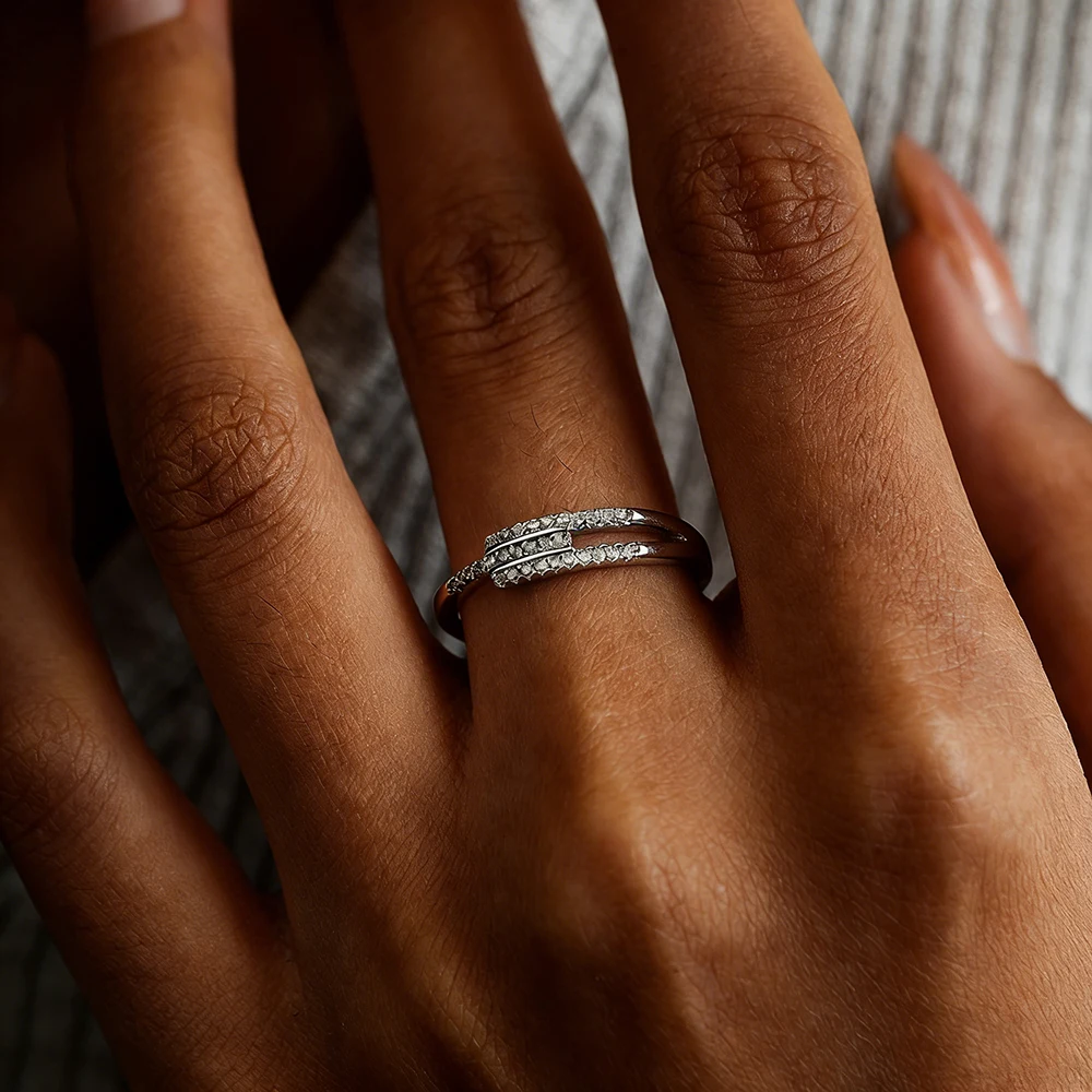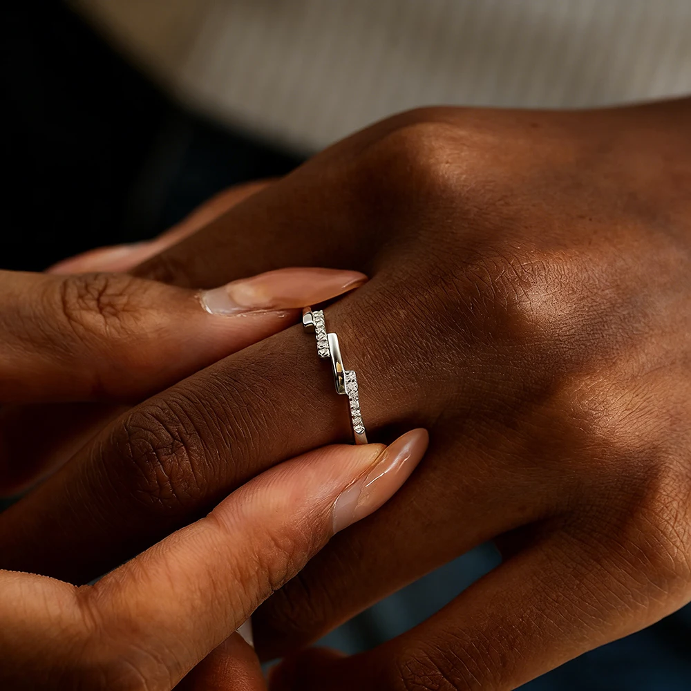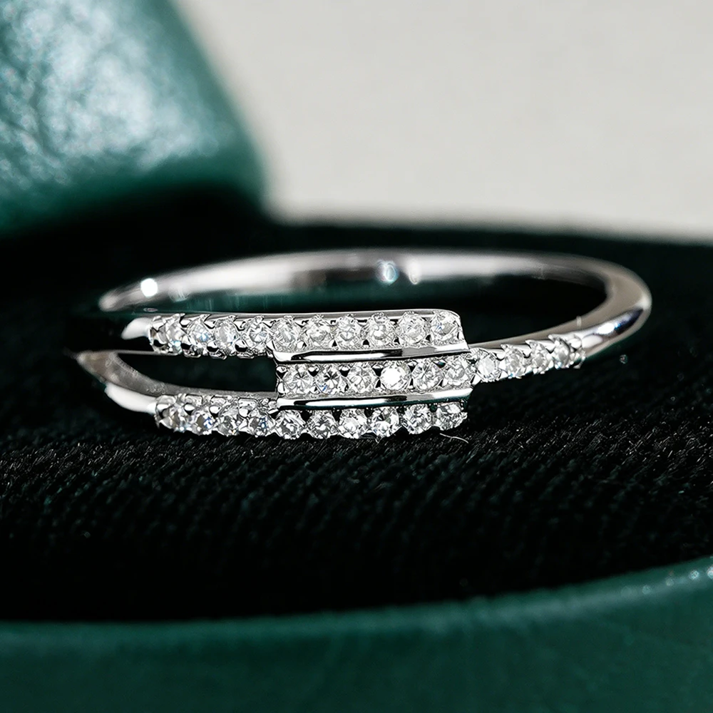 TEMGF Simple Moissanite Ring for Women S925 Silver Irregular Row Ring Party Hip Hop Stacked Fashion Item Fine Jewelry Certified