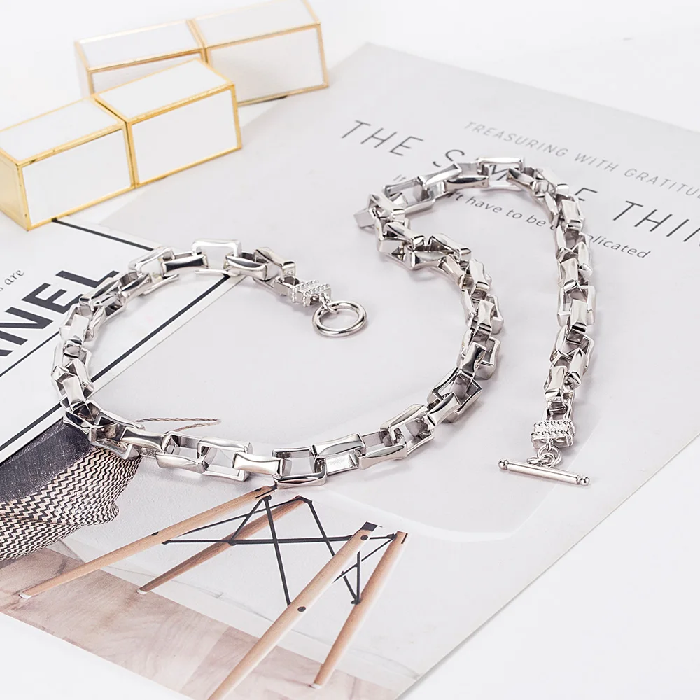Temperament Man Classic Punk Hip Hop Lock Chain Necklace 925 Sterling Silver Retro Trend Party Cuban Chain Italy Accessories