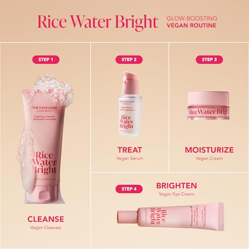 [TRAVEL FRIENDLY SKINCARE SET] Full routine of Rice Water Bright favorites in TSA-approved sizes are ready to go anywhere you go[DEEP PORE CLEANSING] Foaming Cleanser whips up into a rich foam to remove 99.9% of pore-clogging imprurities after one use.[HYDRATING & BRIGHTENING] Vegan Serum, Eye Cream, and Cream moisturize and help skin look brighter and more radiant.[RICE WATER FOR RADIANT SKIN] Enriched with vitamin A, B, E and ceramide to help skin feel moisturized and look radiant.[VEGAN KOREAN SKINCARE] Manufactured and imported directly from Korea. Dermatologist tested, Suitable for all skin types.