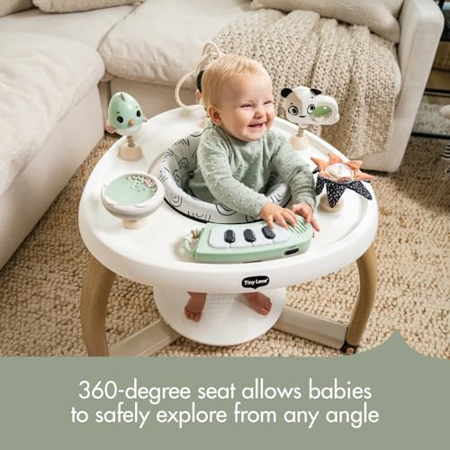 DEVELOPMENTAL ACTIVITY CENTER FOR BABIES Help your baby grow and develop with The Black & White Décor 5-in-1 Stationary Activity Center. Created with the aid of pediatric physical therapists, it offers a world of play and discovery with 6 unique toys.GROWS WITH YOUR CHILD With 5 modes of use, the activity center grows with your child: tummy time toy, baby balance board, stationary activity center, toddler activity table, or child table and chair.FUN AND INSPIRING Transforming from an activity center with rotating seat and interchangeable toys to a fun play table for toddlers, the activity center is designed to foster cognitive & emotional development, motor skills, creativity, and communication.6 DETACHABLE TOYS The activity center includes 6 detachable toys including a bouncing beads drum, bouncing panda with spinning rattle, bead maze with rotating mirror, bird wind chime, tactile crinkly leaves, and electronic piano.APPEALING MODERN DESIGN Tiny Love’s Black & White Décor Collection welcomes little ones into the world with a contrasting, clear design that is perfectly suited to babies’ developing senses, adding a touch of modern design to any environment.
