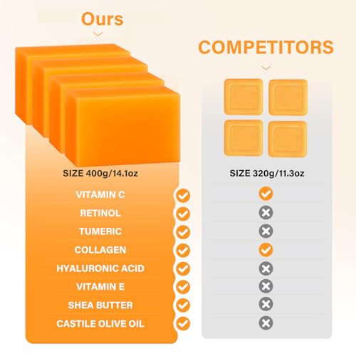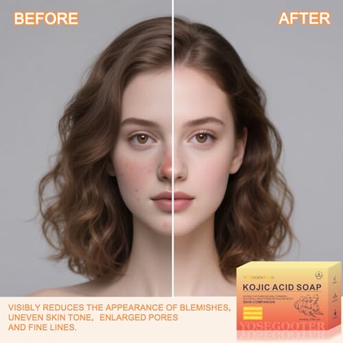 【Turmeric + Kojic Acid】 Features a potent blend of Turmeric Extract, Retinol, Kojic Acid, and Hyaluronic Acid for antioxidant-rich cleansing that deeply nourishes skin. Our turmeric kojic acid soap helps revitalize dull-looking skin, replenish moisture, and improve the appearance of skin texture and tone, revealing your skin's natural radiance and leaving it feeling rejuvenated.【Soothing & Comforting Complex】 Curcumin helps soothe skin and protect against environmental stressors, promoting a healthy-looking complexion. Our Turmeric Soap deeply nourishes your skin while helping minimize the look of blemishes and fine lines, revealing smoother, softer, and more youthful-looking skin.【Triple Action for Radiant Skin】 Kojic Acid helps even skin tone, Retinol supports skin renewal, and Hyaluronic Acid illuminates, visibly enhancing skin clarity and brightness. This Kojic Acid Turmeric Soap helps improve the appearance of uneven tone for a more luminous look.【Cleanse, Nourish, Hydrate】 Our Kojic Acid Soap, enriched with nourishing shea butter, vitamin C, vitamin E, and hyaluronic acid, delivers deep hydration, gentle exfoliation, and essential nourishment – leaving skin feeling soft, supple, and healthy with every use. Kojic acid and turmeric create a silky lather to gently cleanse away impurities, while Glycerin & Shea Butter help lock in moisture for a comfortable feel without tightness.【Gentle for Sensitive Skin】 Our soap promotes a balanced, more even-looking tone and a healthy glow. Gently use it on your face, body, and neck. This turmeric soap's formulation helps support skin comfort, ensuring a balanced cleanse. Simply lather, gently massage for 20–30 seconds, and rinse thoroughly.