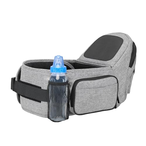Ergonomic Design: Hip seat carrier supports babies from newborn to toddler (up to 45 lbs) while evenly distributing weight to protect your backComfort Features: Built-in lumbar support and padded waistband help reduce back and shoulder strain for comfortable, all-day carryingVersatile Carrying: Easily switch between face-to-face, front-facing, side, or feeding positions to keep your baby comfortable at every stageSmart Storage: Five easy-access pockets and a hideable bottle holder keep essentials close so you can leave the diaper bag behindSafe and Adjustable: USA safety-certified design fits waists 23–44 inches with an extender option for a secure, customizable fit