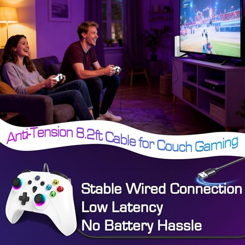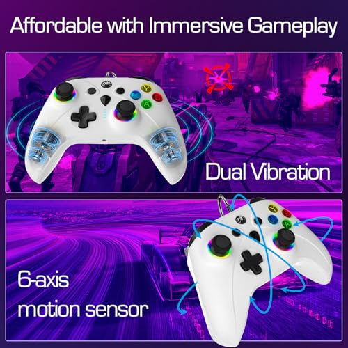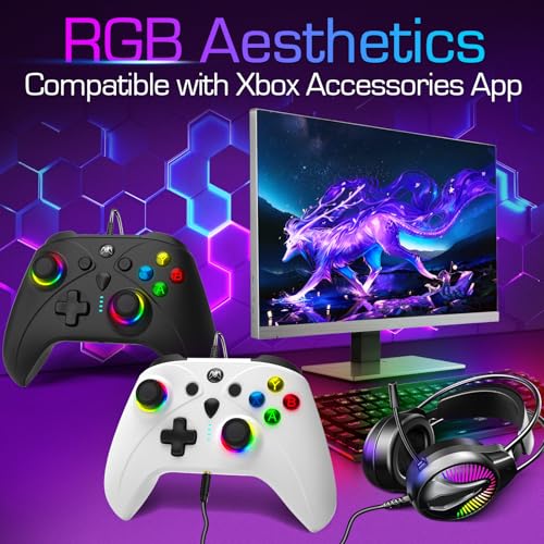 UGAME Wired Xbox Controller for X Box Series X S One PC PS4 Switch, Gaming Control Controllers with 1000Hz Polling Rate No Drift Stick, Custom Paddles Turbo Remote, RGB Light White Gamepad