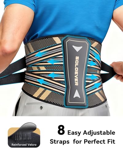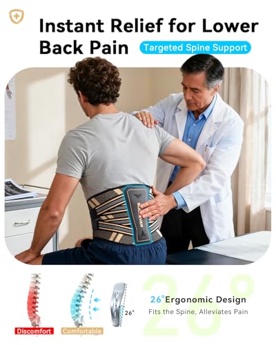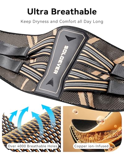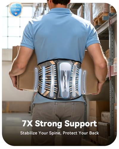 【Medical-Grade Back Support for Maximum Stability】With a medical-grade design, this lower back brace features (1 bionic spine plate+2 memory steel plates+2 resin support bars+ 2 flexible springs), providing precise support for different muscle areas and 360° full coverage. By expanding the pressure distribution area and evenly dispersing force, it stabilizes the spine and relieves back pain. Whether lifting, sitting, driving, exercising, or doing daily tasks, it offers strong lower back support.【Patent-Level Dual Compression System,Perfect Fit】Our back support belt features a patented dual compression system, combining 8 adjustable straps and 4 pulley designs for easy adjustment, ensuring a perfect fit and optimal compression. The widened Velcro, tested for over 20,000 cycles, won't slip or loosen even with extended wear,Let you enjoy effortless and carefree activity all day long!【Copper Infused, Ultra Breathable & Comfortable】Crafted with 4D knitting technology, this back brace for men lower back features breathable, soft, and skin-friendly fabric, with over 4,000 ventilation holes to enhance airflow, ensuring the waist stays dry and comfortable. Infused with 4120ppm copper ions, the fibers effectively suppress odors, keeping it fresh even after prolonged wear. It perfectly balances comfort and functionality, offering an exceptional wearing experience.【Scientific Pressure Distribution,360°spine health protection】With a scientific pressure distribution design, this lumbar support belt offers strong back support, moderate side pressure, and light abdominal compression to effectively relieve back pain. The ergonomic support plate stabilizes the spine, reducing pressure from sciatica and herniated discs. Side support strips prevent twisting, while abdominal straps provide core support and ease muscle tension.Provide comprehensive and lasting protection for your spine.【Size Guide】Our back brace for women & men and available in multiple sizes. To find the perfect fit, please stand up, relax your abdomen, and measure around the narrowest part of your waist, just above the belly button. Ensure the tape measure is snug but not tight.S: 78-85 cm (30.7-33.5 inches)M: 85-95 cm (33.5-37.4 inches)L: 90-105 cm (35.4-41.3 inches)XL: 105-125 cm (41.3-49.2 inches)XXL: 120-140 cm (47.2-55.1 inches)