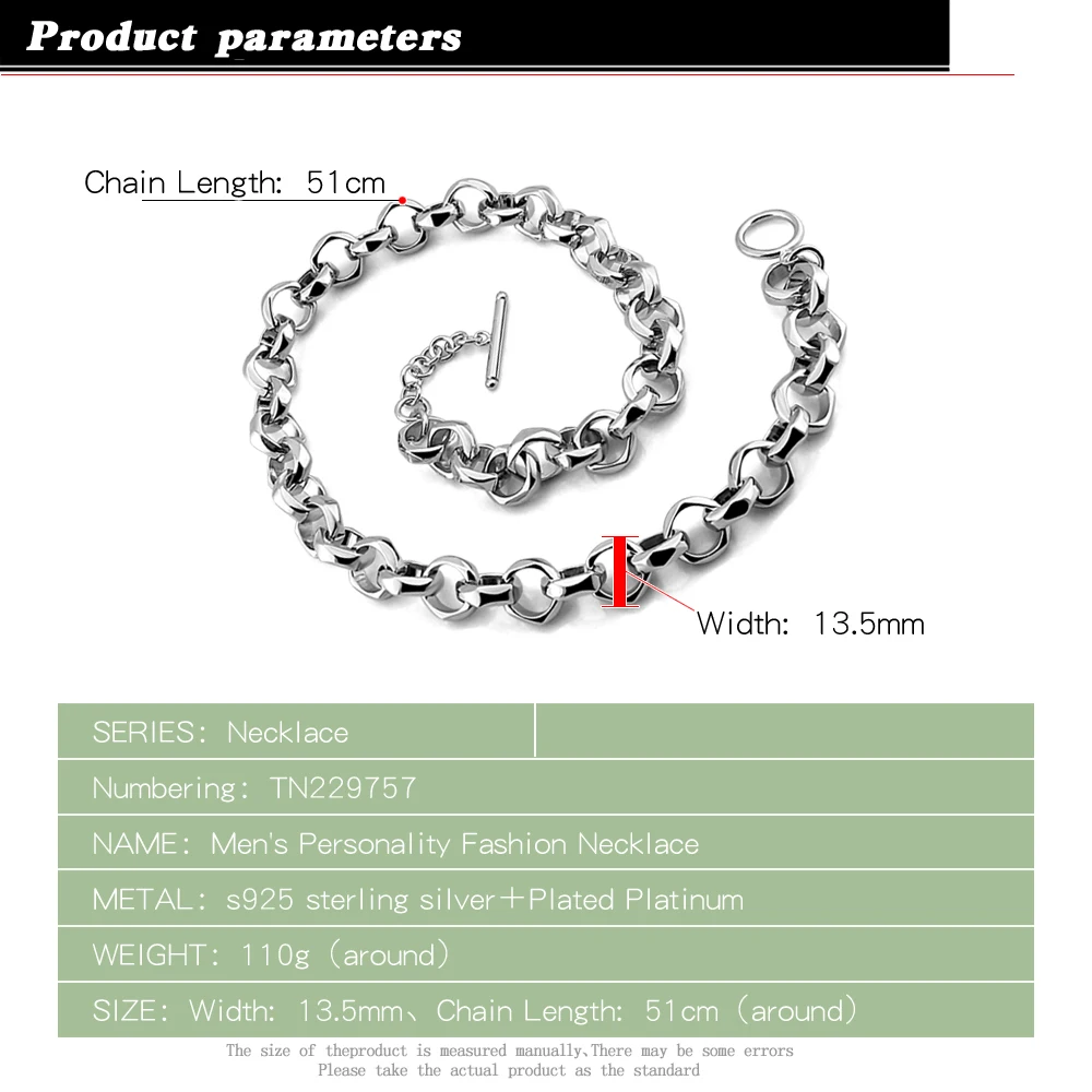 Unisex 13mm Cuban Chain Necklace 925 Sterling Silver Italy Design Punk Fashion Jewelry for Men & Women 2025 Must-Have Daily
